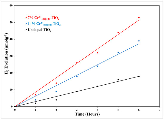 2.9. Photocatalytic Hydrogen Generation by Cr3+-Doped TiO2 Nanocrystals: Time-Dependent Production