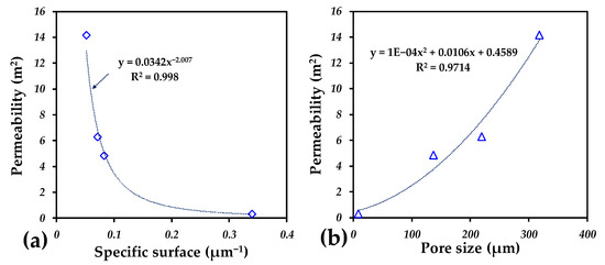 | Sample | d50 (µm) | Specific Surface (µm−1) | Pore Connectivity (%) | Permeability (µm2) |