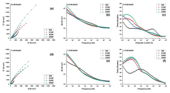 - The S300 sample showed a higher impedance magnitude, indicating a higher corrosion resistance; however, a low charge transfer reduced the catalytic activity of HER.