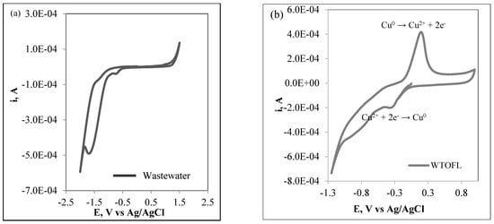Fenton’s classic reaction describes the activation of H2O2 by ferrous ions (Fe2+) whose disadvantages lie in the high sludge production, the requirement of large amounts of iron, and the difficulties in catalyst recovery; it also works efficiently at an acidic pH between 2 and 3.5, which has led to the search for new economically viable and acceptable catalysts [21]. Copper has redox properties quite like iron (E°(Fe3+/Fe2+) = 0.77; E°(Cu2+/Cu+) = 0.17) (Equations (3) and (4)); therefore, copper is viable as a catalyst for Fenton-like reactions; in addition, it has been reported that it can activate H2O2 at a pH higher than 3. There is information on its use independently or in combination with iron, promoting heterogeneous catalysis in Fenton-like reactions [21,22].
