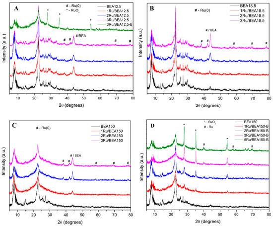 | 2Ru/BEA12.5 | 502 | 186 | 316 | 0.80 | 0.66 | 0.14 | 9.4; 31.5 |