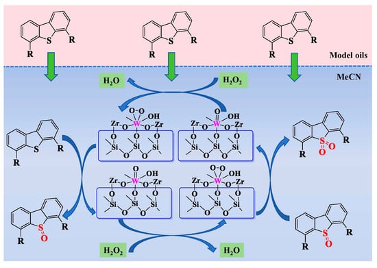 –1). The kinetics of the ODS reactions are further investigated. The mechanism of the ODS reaction is explored through experiments involving leaching, quenching, and the capture of the active intermediate. Finally, a possible reaction mechanism for the ODS process for the 11%WO