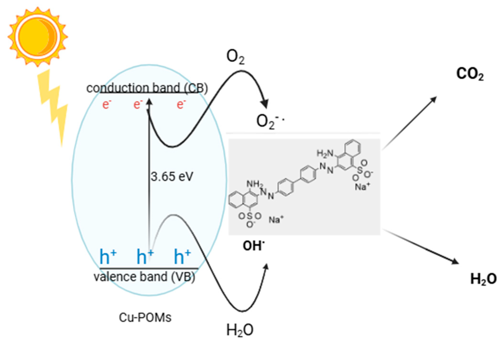 2.2. Photocatalysis Investigations of Cu-POM
