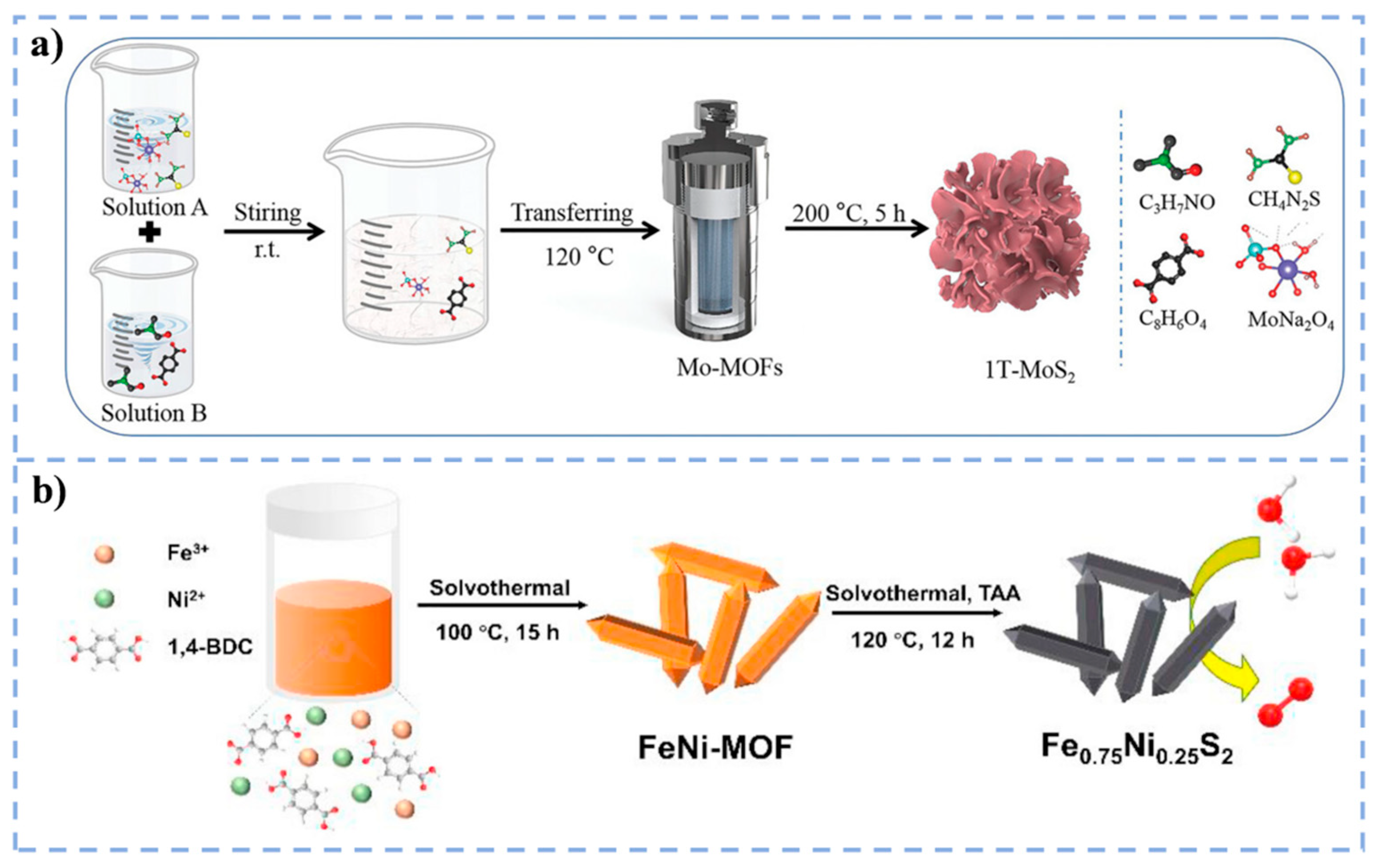 - Liu, T.; Zhang, Y.; Yu, J.; Hu, M.; Wu, Z.; Wei, X.; Yu, S.; Du, Y. Universal synthesis of coral-like ternary MOF-derived sulfides as efficient OER electrocatalysts. Inorg. Chem. Front. 2024, 11, 6064–6071. [Google Scholar] [CrossRef]