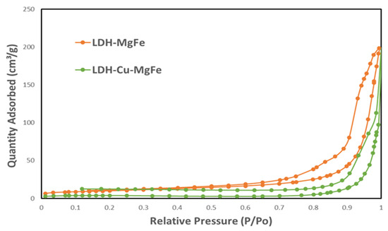 Textural properties of LDH-Mg/Fe and LDH-Cu-Mg/Fe.