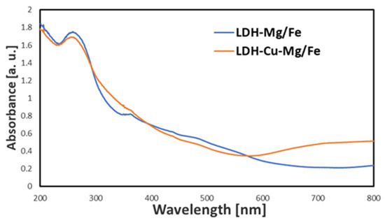 UV-Vis spectra of LDH-Mg/Fe and LDH-Cu-Mg/Fe.