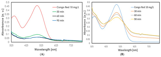 Congo Red decoloration by (A) LDH-Cu-Mg/Fe and (B) LDH-Mg/Fe.