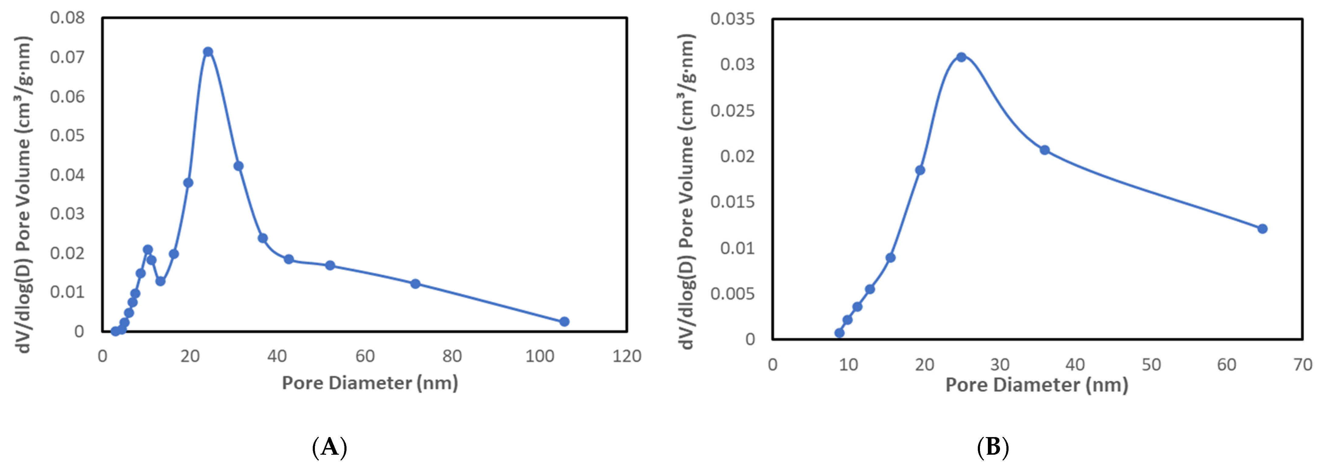 2.1.2. Textural Characterization from N2 Adsorption–Desorption Isotherms