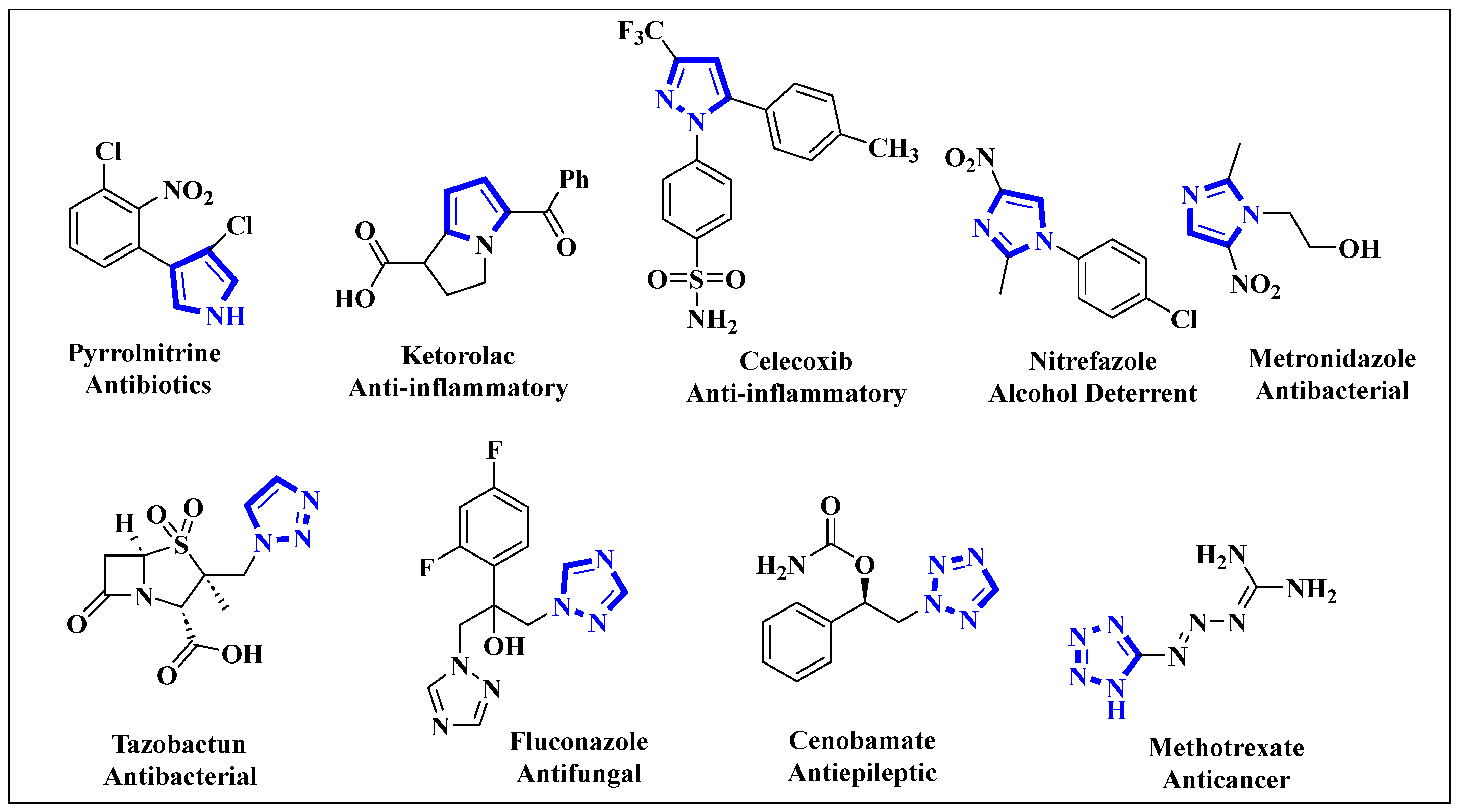 - Heravi, M.M.; Zadsirjan, V. Prescribed drugs containing nitrogen heterocycles: An overview. RSC Adv. 2020, 10, 44247–44311. [Google Scholar] [CrossRef]