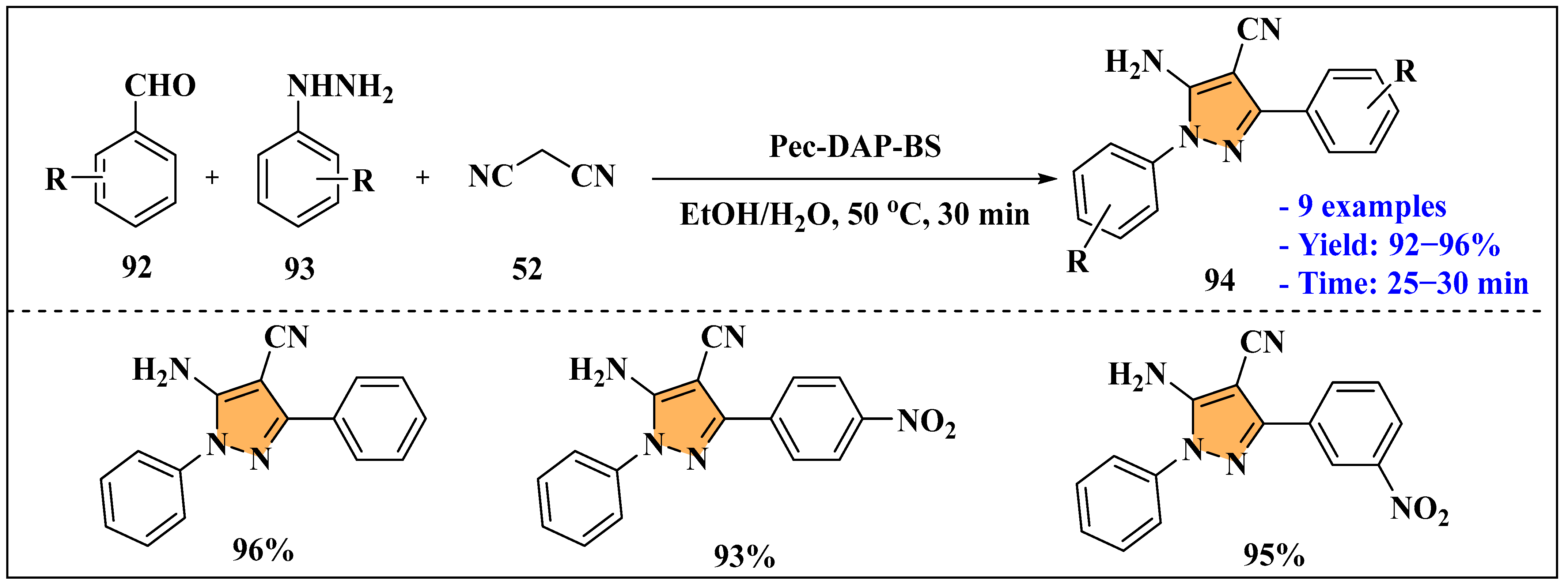 3.2.2. Ionic Liquids Mediated Multicomponent Reaction for Pyrazole Synthesis in Homogenous Phase