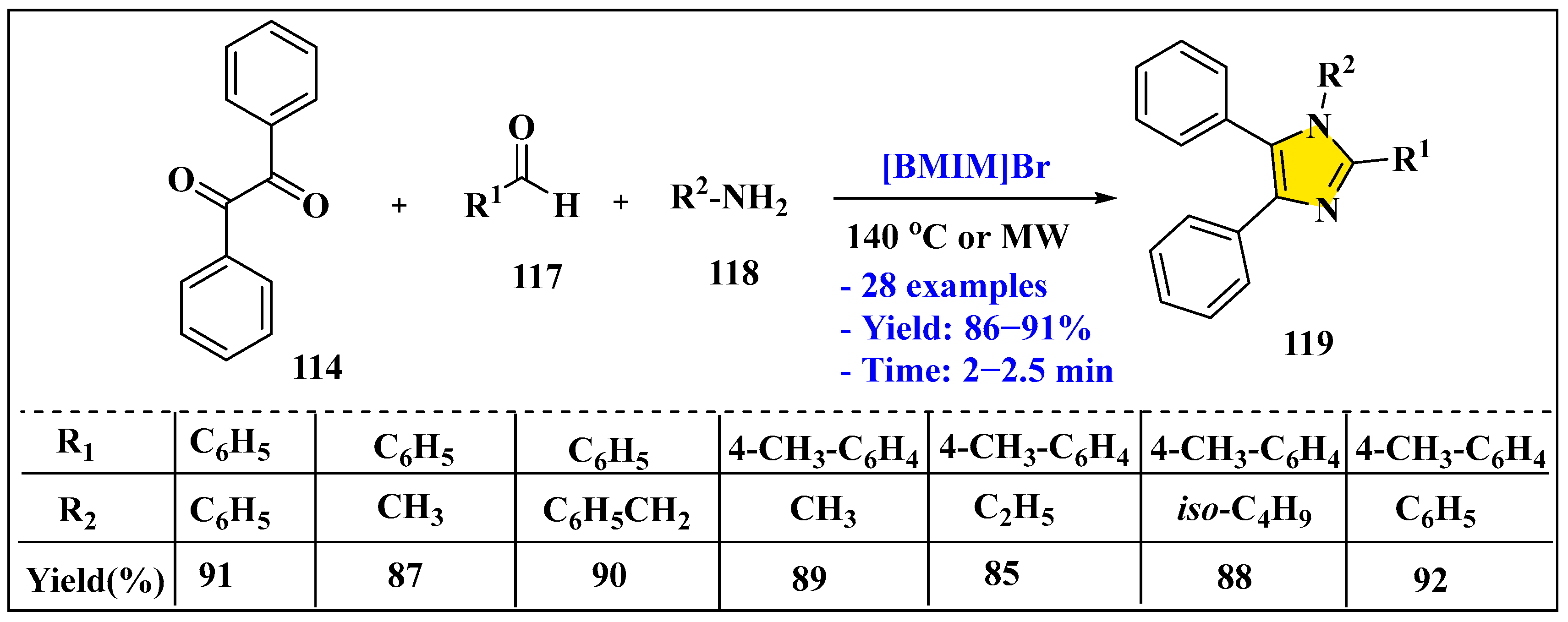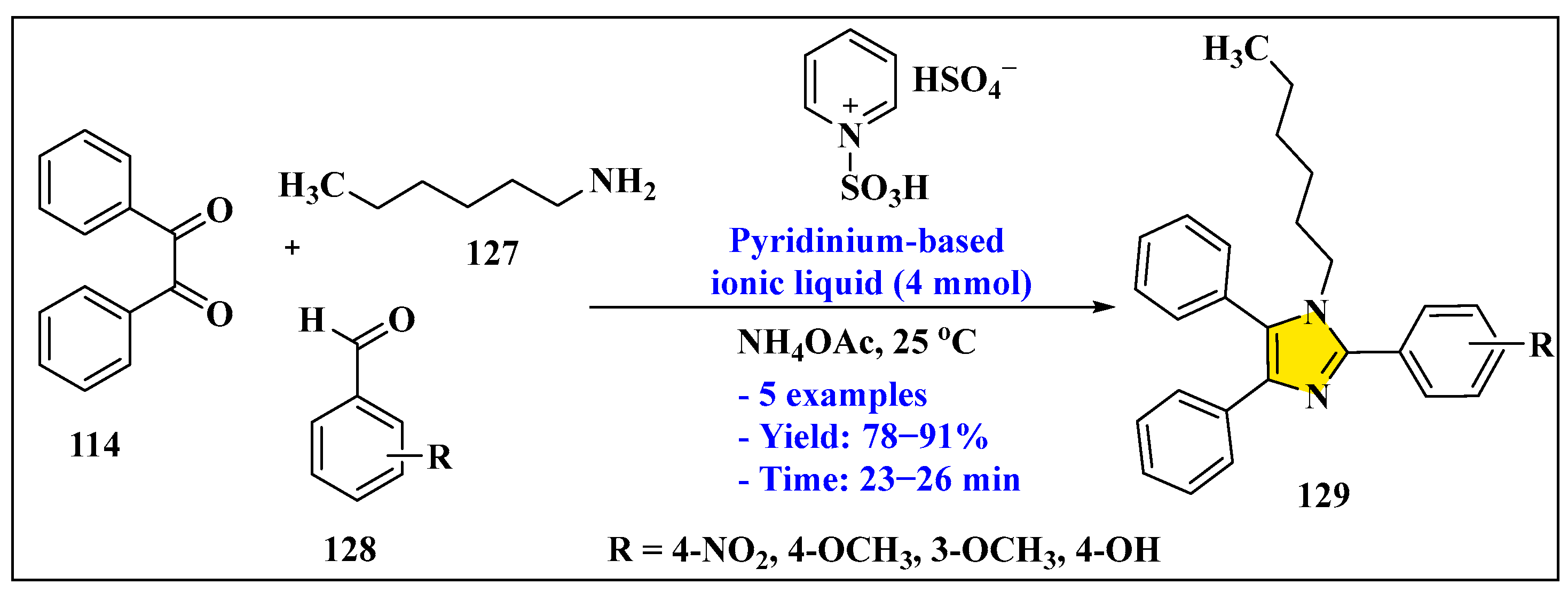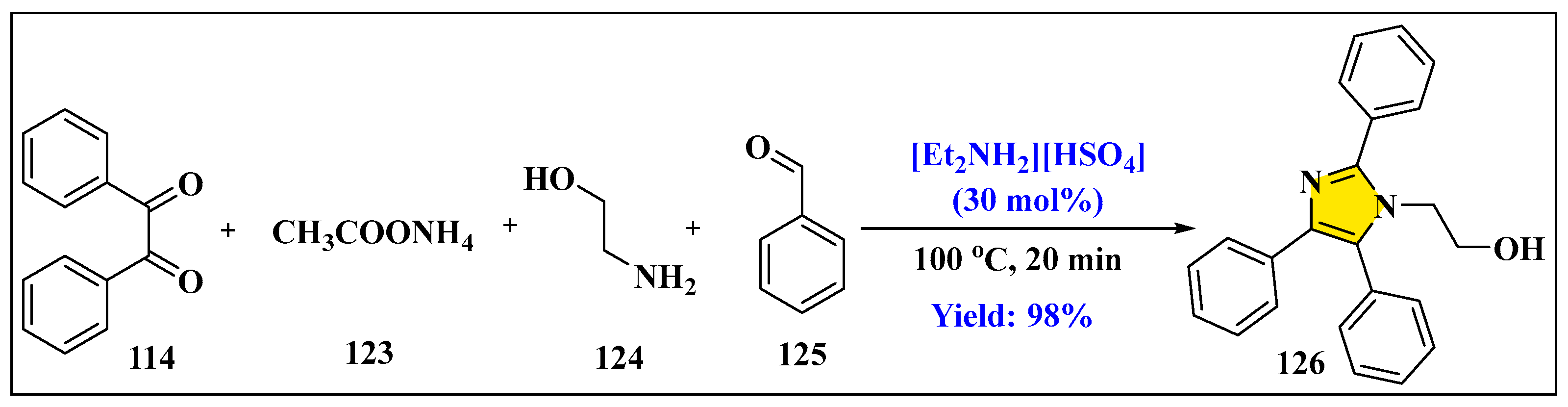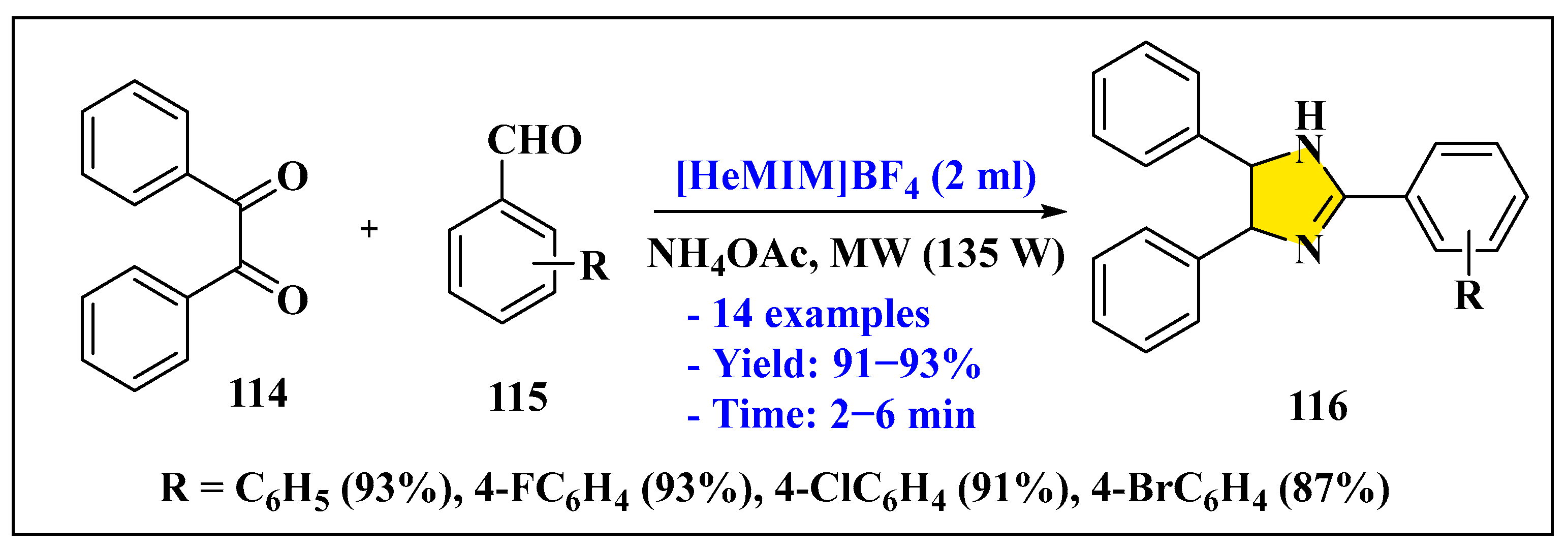 3.3. Synthesis of Imidazole Derivatives Using Ionic Liquids