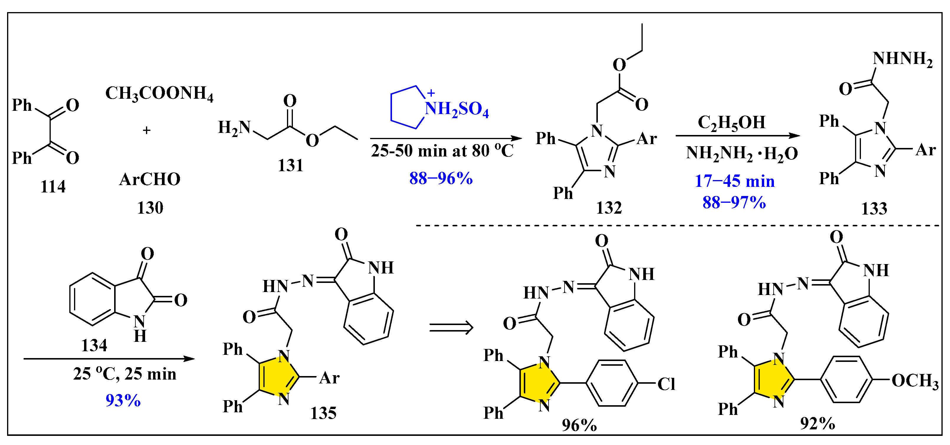 3.3.2. Synthesis of Imidazole Derivatives in Heterogeneous Phase