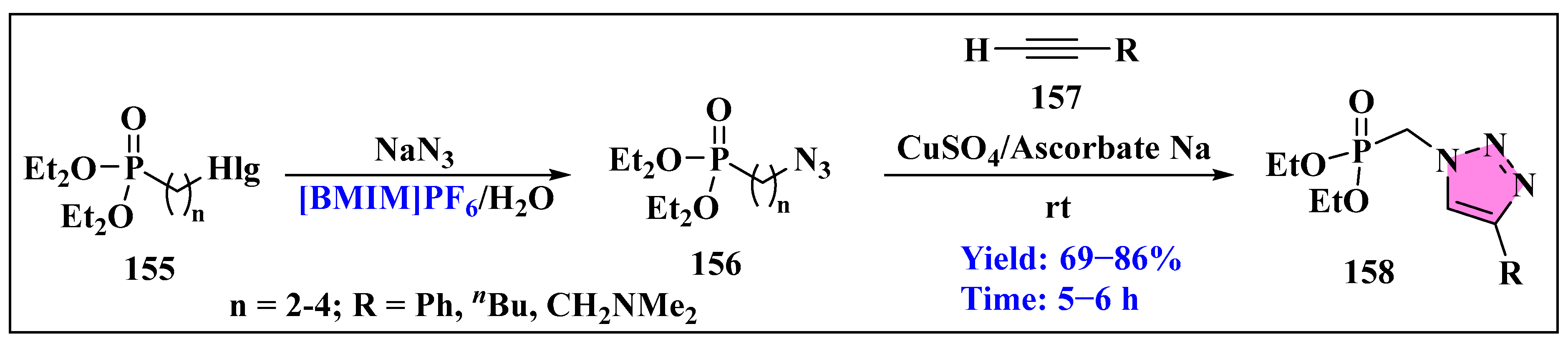 3.4.3. Ionic Liquids Mediated Functionalization of Triazole in Homogenous Phase