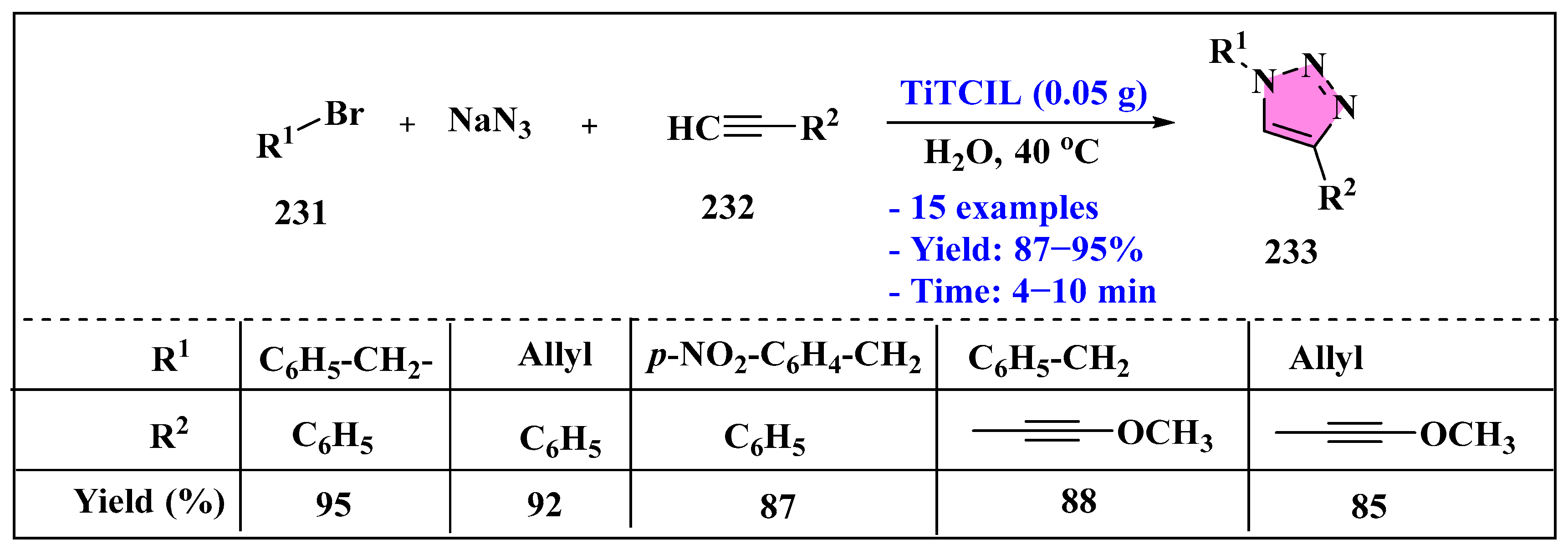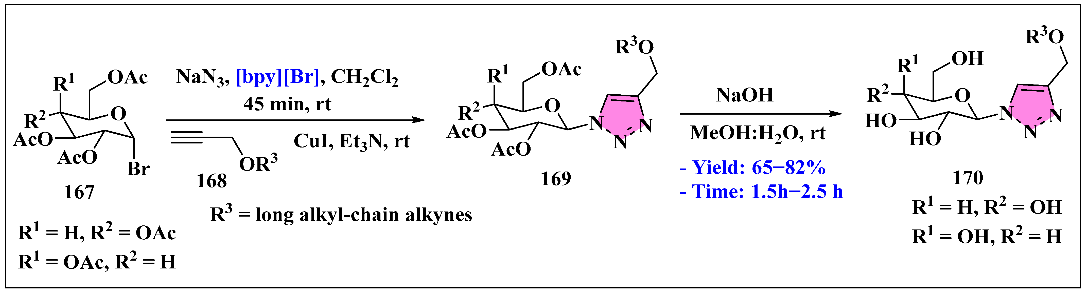 3.6.1. Ionic Liquids Mediated Click Reaction in Homogenous Phase