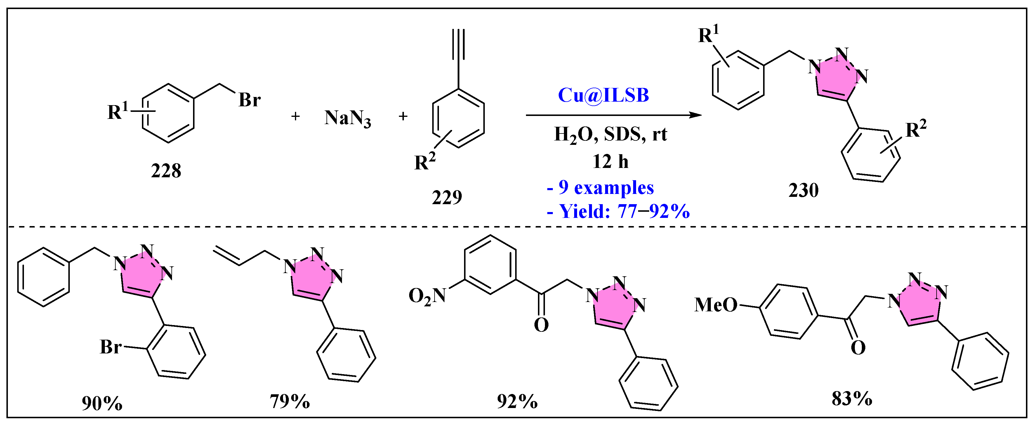 3.6.2. Ionic Liquids Mediated Click Reaction in Heterogenous Phase