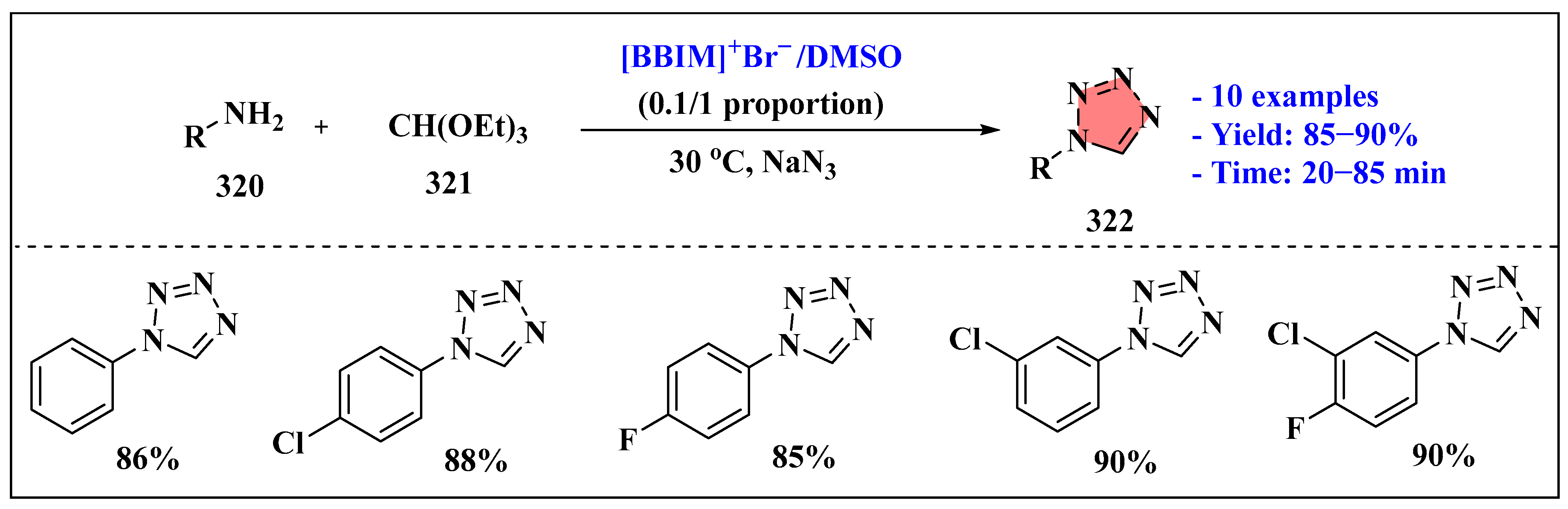 3.6. Synthesis of Tetrazole Derivatives Using Ionic Liquids