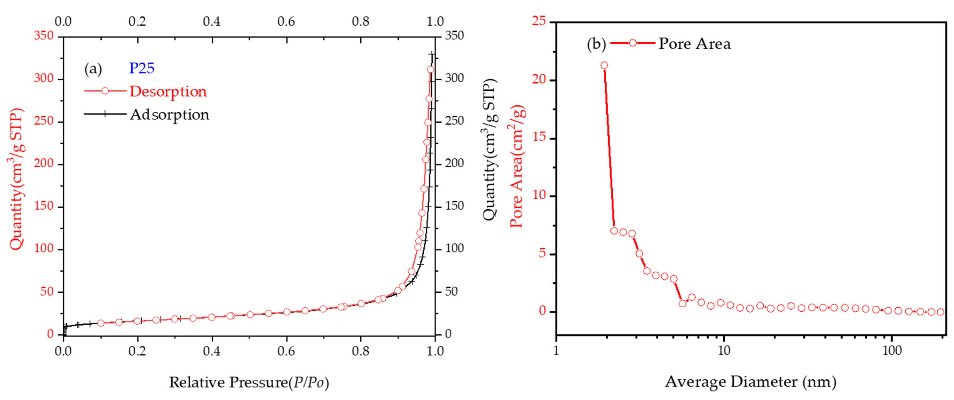 - Ohtani, B.; Prieto-Mahaney, O.O.; Li, D.; Abe, R. What is Degussa (Evonik) P25? Crystalline composition analysis, reconstruction from isolated pure particles and photocatalytic activity test. J. Photochem. Photobiol. A 2010, 216, 179–182. [Google Scholar] [CrossRef]