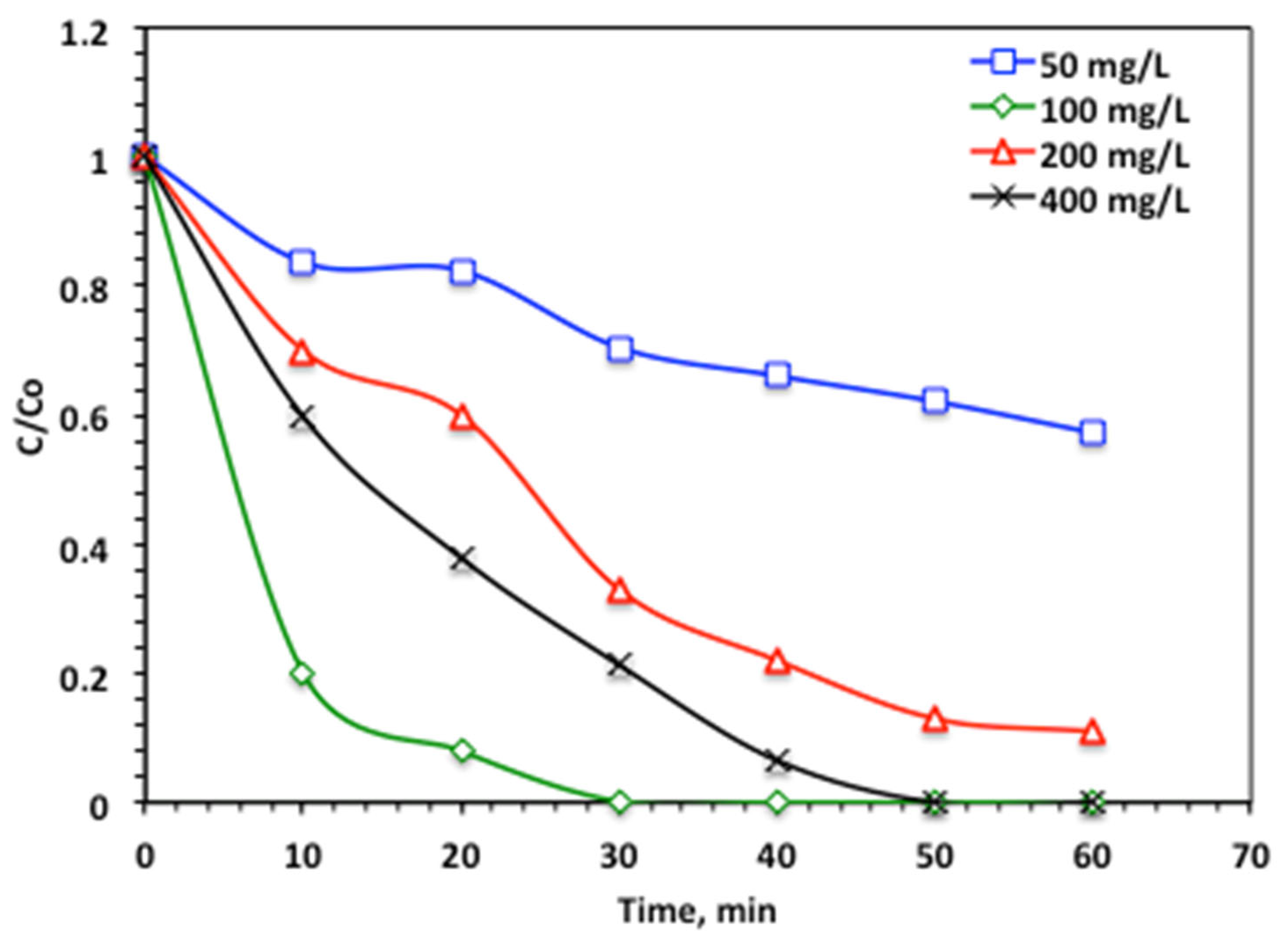 2.3.7. Temperature Effect on Modified Solar-Fenton System