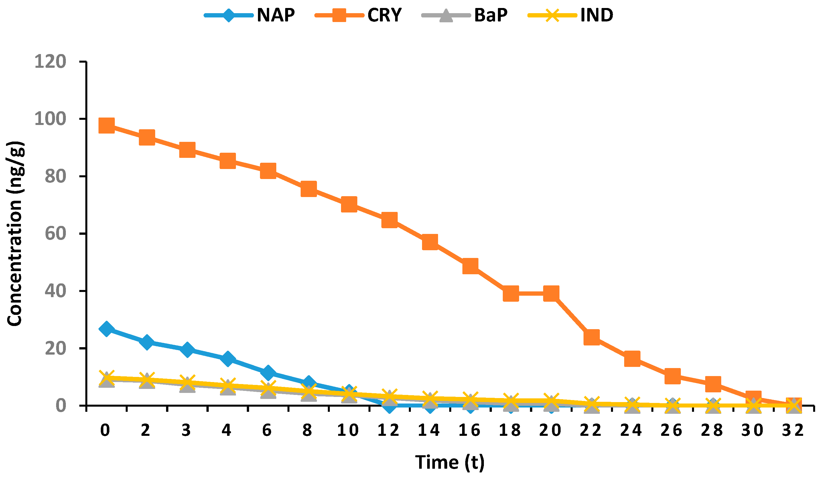 - El-Saeid, M.H.; Al-Turki, A.M.; Nadeem, M.E.; Hassanin, A.S.; Al-Wabel, M.I. Photolysis degradation of polyaromatic hydrocarbons (PAHs) on surface sandy soil. Environ. Sci. Pollut. Res. 2015, 22, 9603–9616. [Google Scholar] [CrossRef]