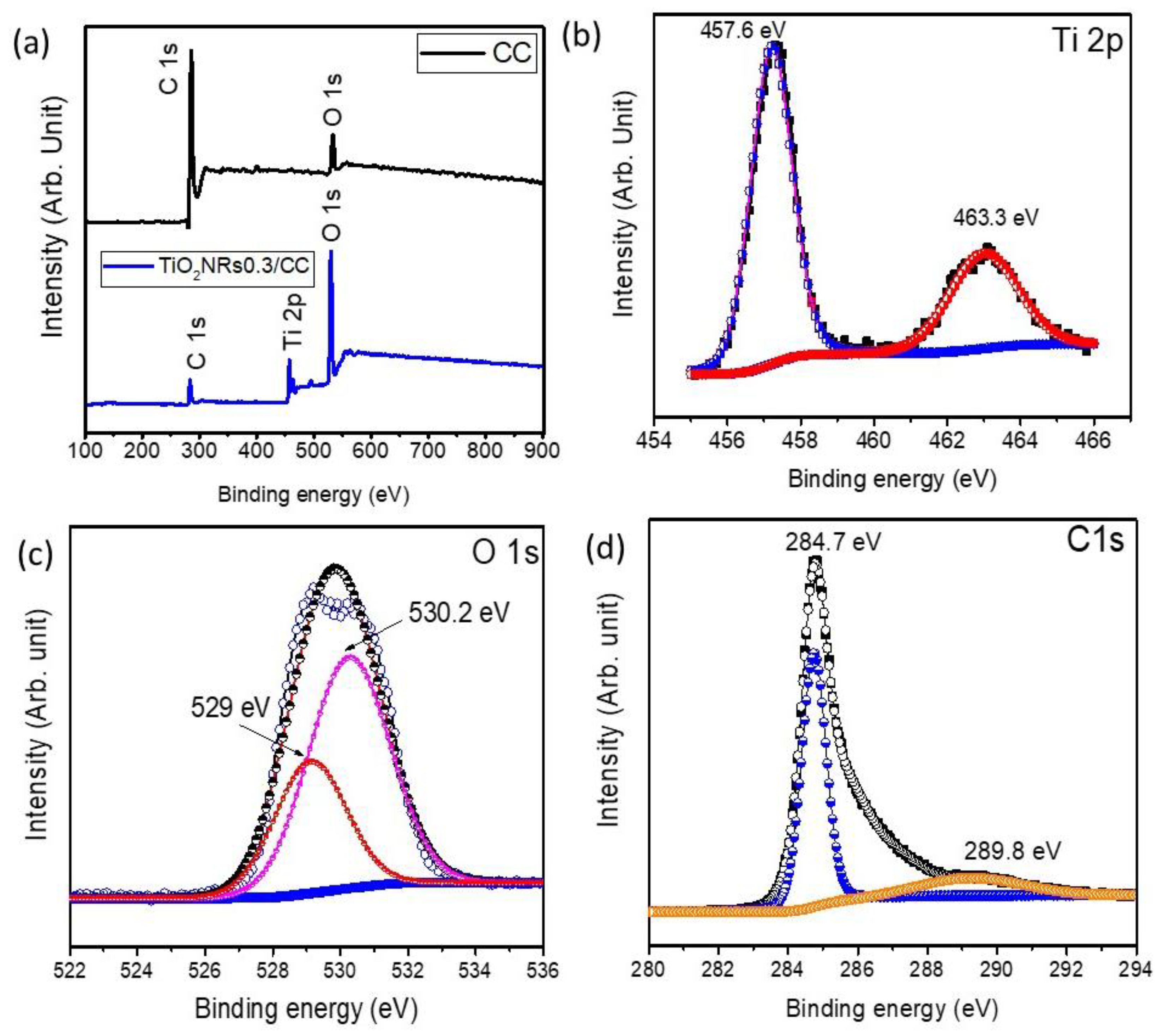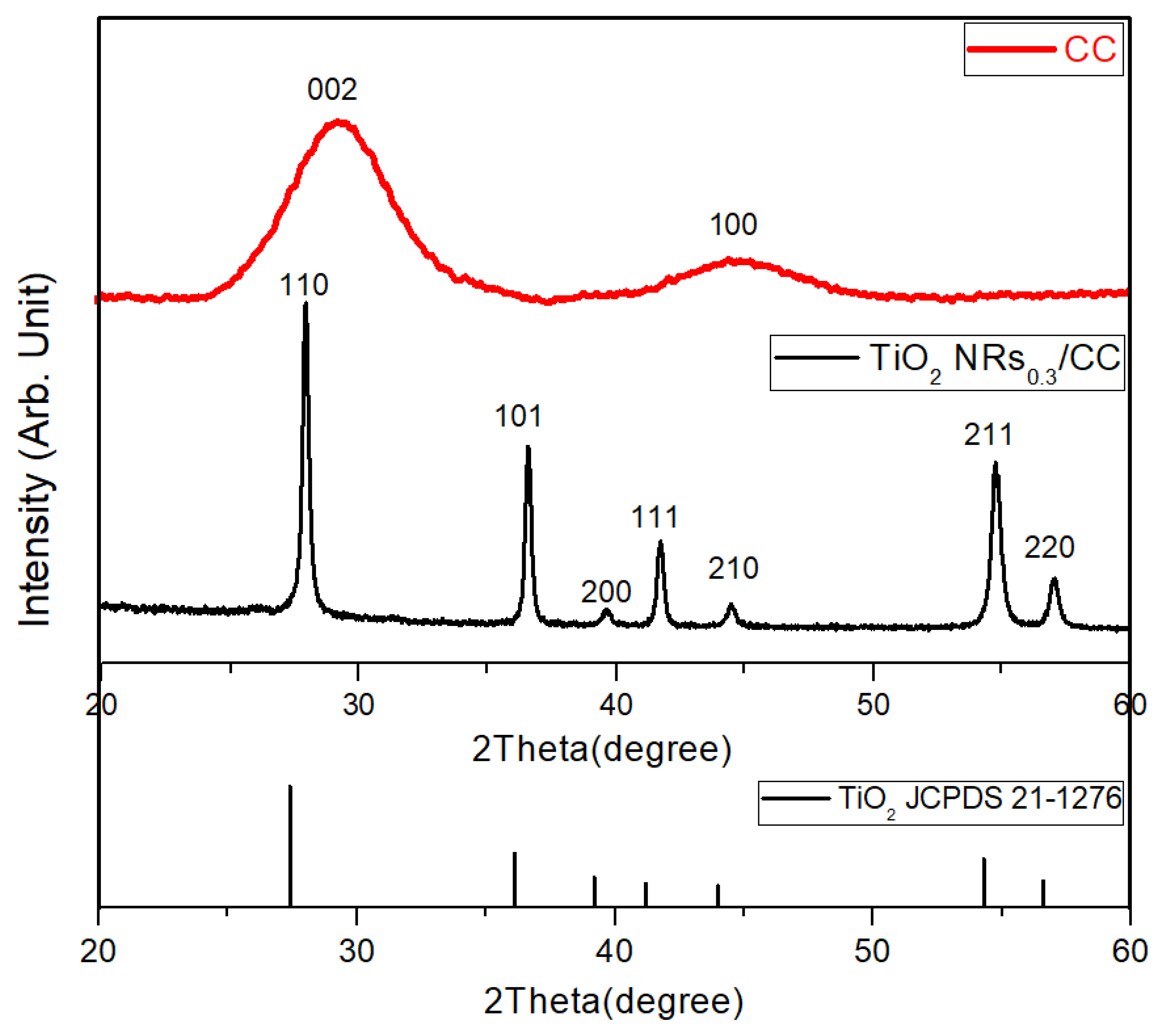 2.3. Surface Chemical Composition and States of TiO2 NRs/CC