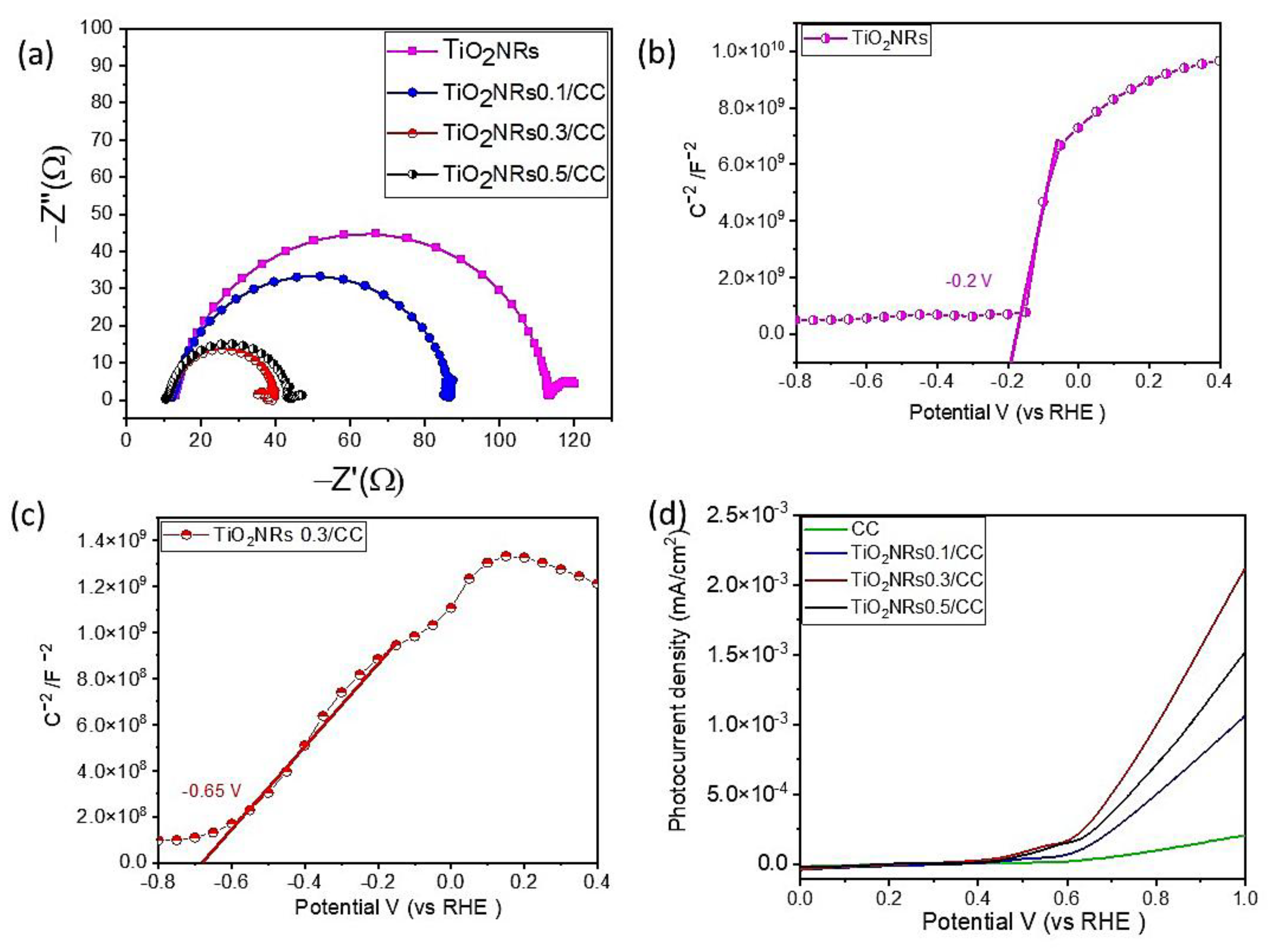 2.5. Charge Transport Resistance and Semiconductor Characteristics of TiO2 NRs/CC