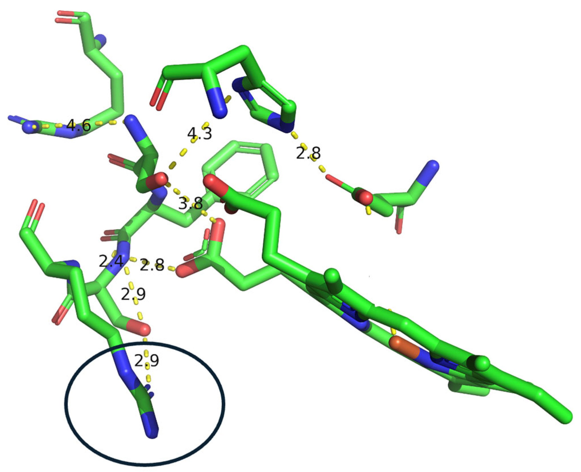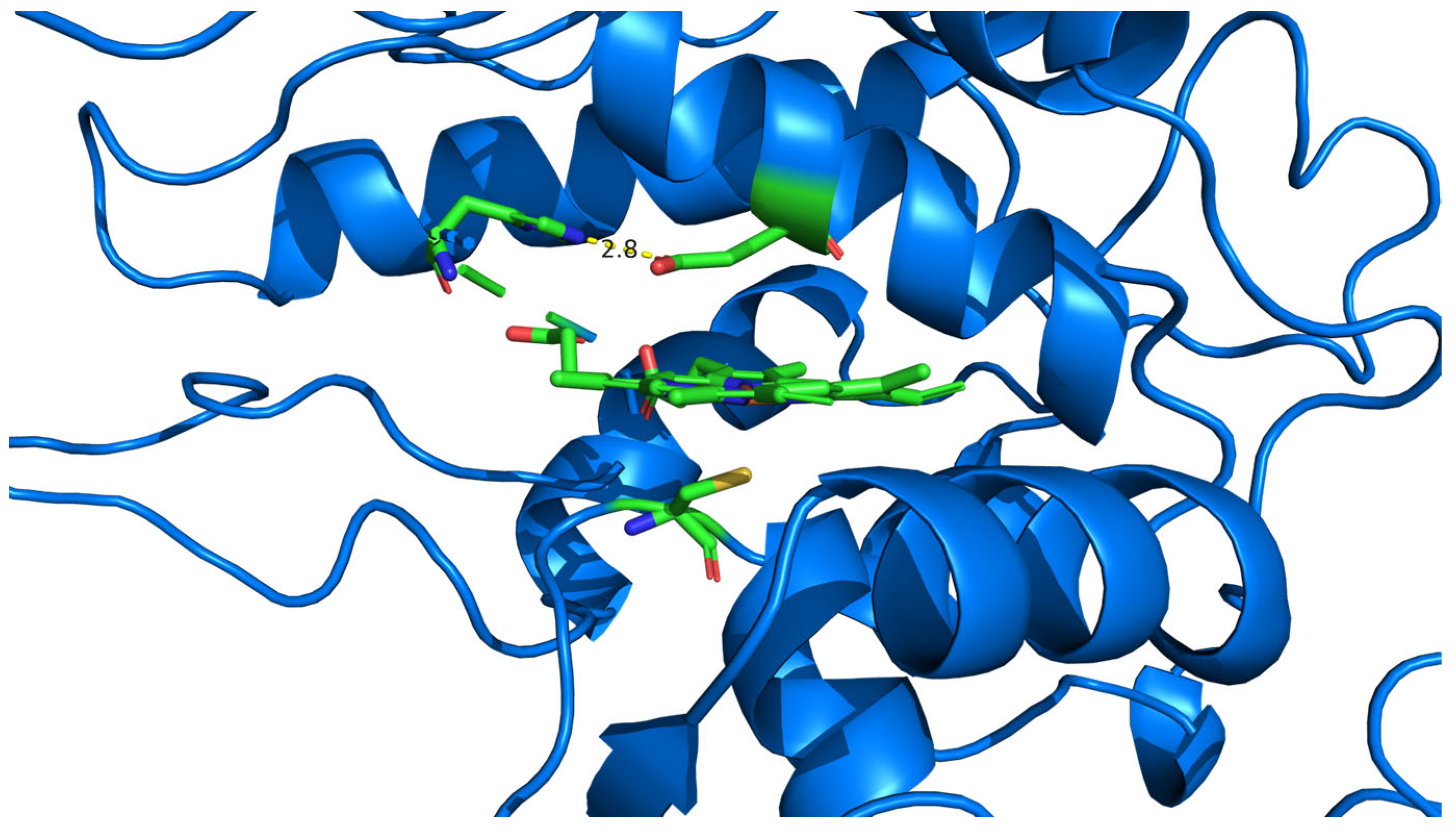 - Edwards, S.L.; Poulos, T.L. Ligand Binding and Structural Perturbations in Cytochrome c Peroxidase. A Crystallographic Study. J. Biol. Chem. 1990, 265, 2588–2595. [Google Scholar] [CrossRef] [PubMed]