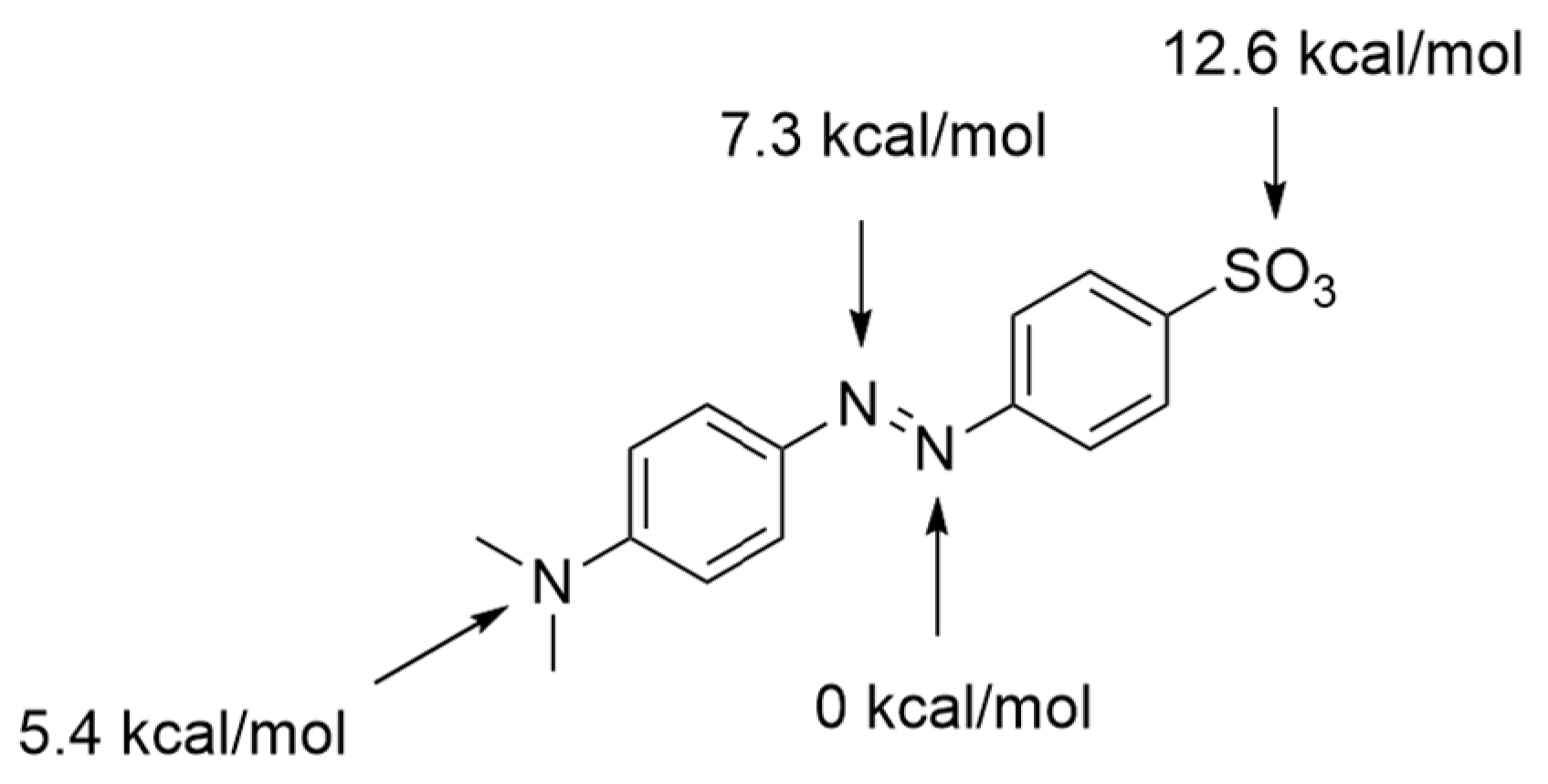 - Ojala, W.H.; Lu, L.K.; Albers, K.E.; Gleason, W.B.; Richardson, T.I.; Lovrien, R.E.; Sudbeck, E.A. Intermolecular Interactions of Sulfonated Azo Dyes: Crystal Structures of the Diammonium, Dilithium, Magnesium and Calcium Salts of 7-Hydroxy-8-(Phenylazo)-1,3-Naphthalenedisulfonic Acid (Orange G). Acta Crystallogr. B Struct. Sci. 1994, 50, 684–694. [Google Scholar] [CrossRef]