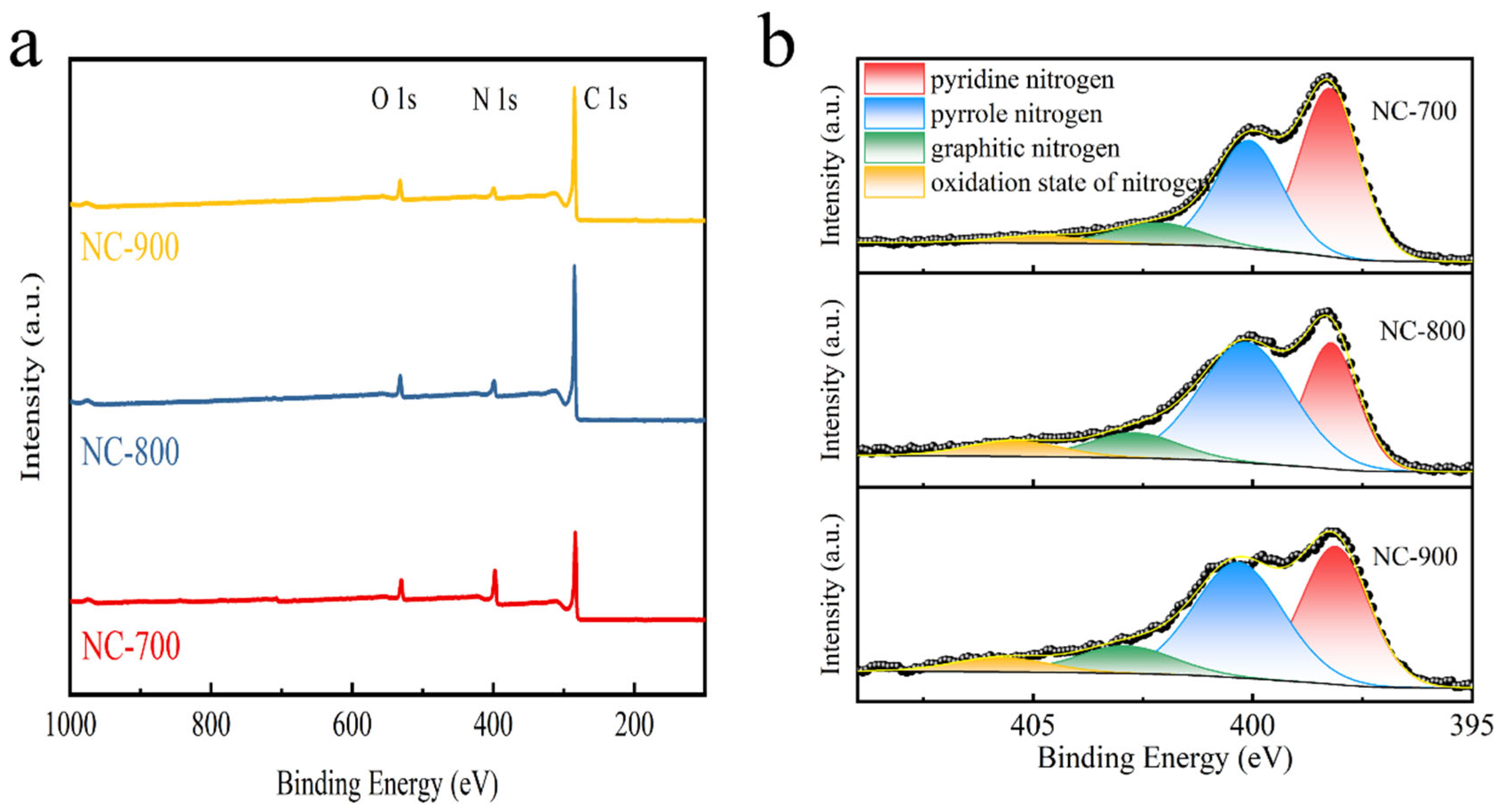 Samples | Pyridinic N | Pyrrolic N | Graphitic N | Oxidized N |