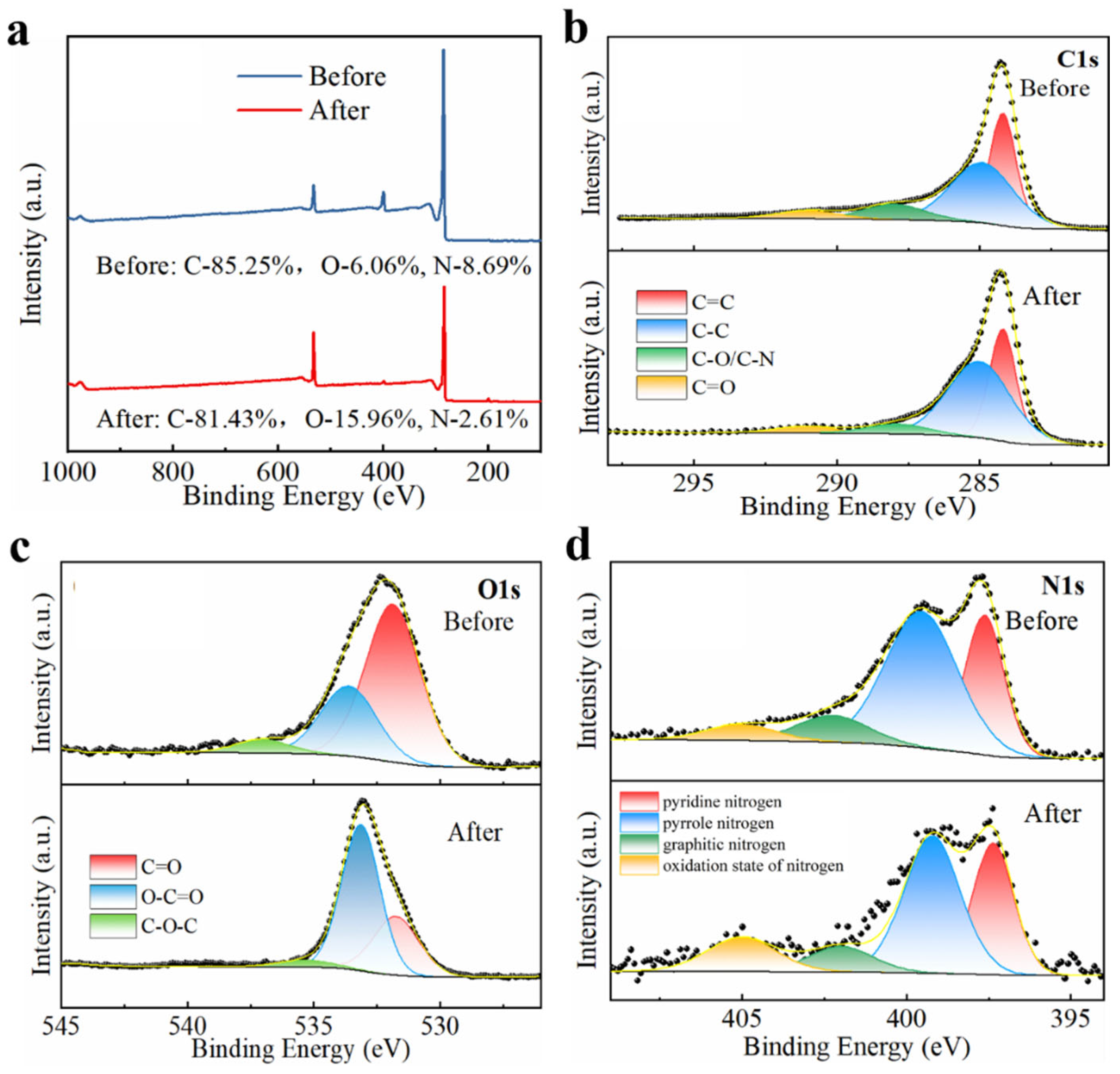 2.3.2. The Changes in the Surface Structure of NC-800 Before and After the Reaction