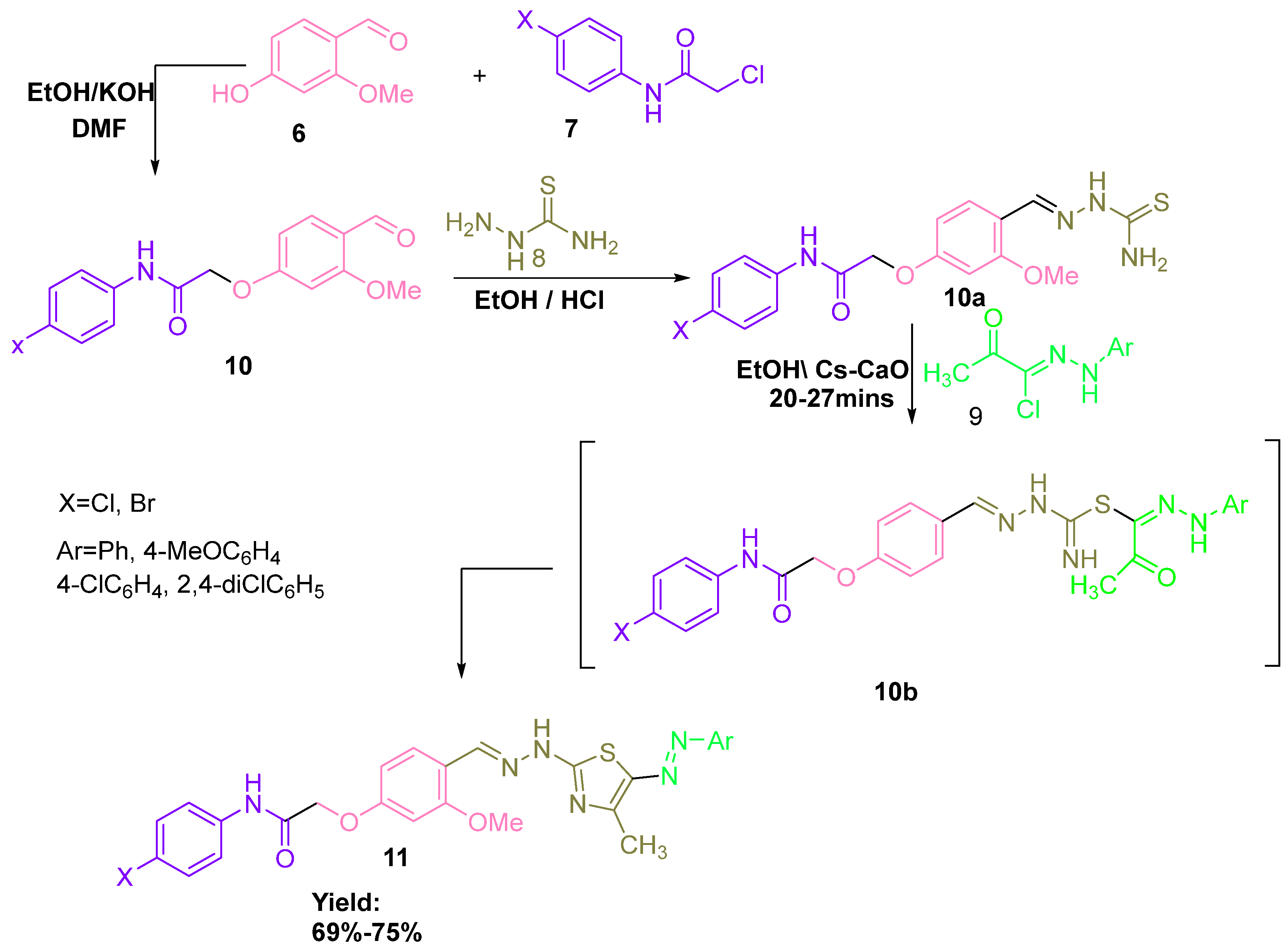 3.1. Synthesis of Five-Membered Heterocycles: Pyrazoles, Thiazoles, and Pyrazolines