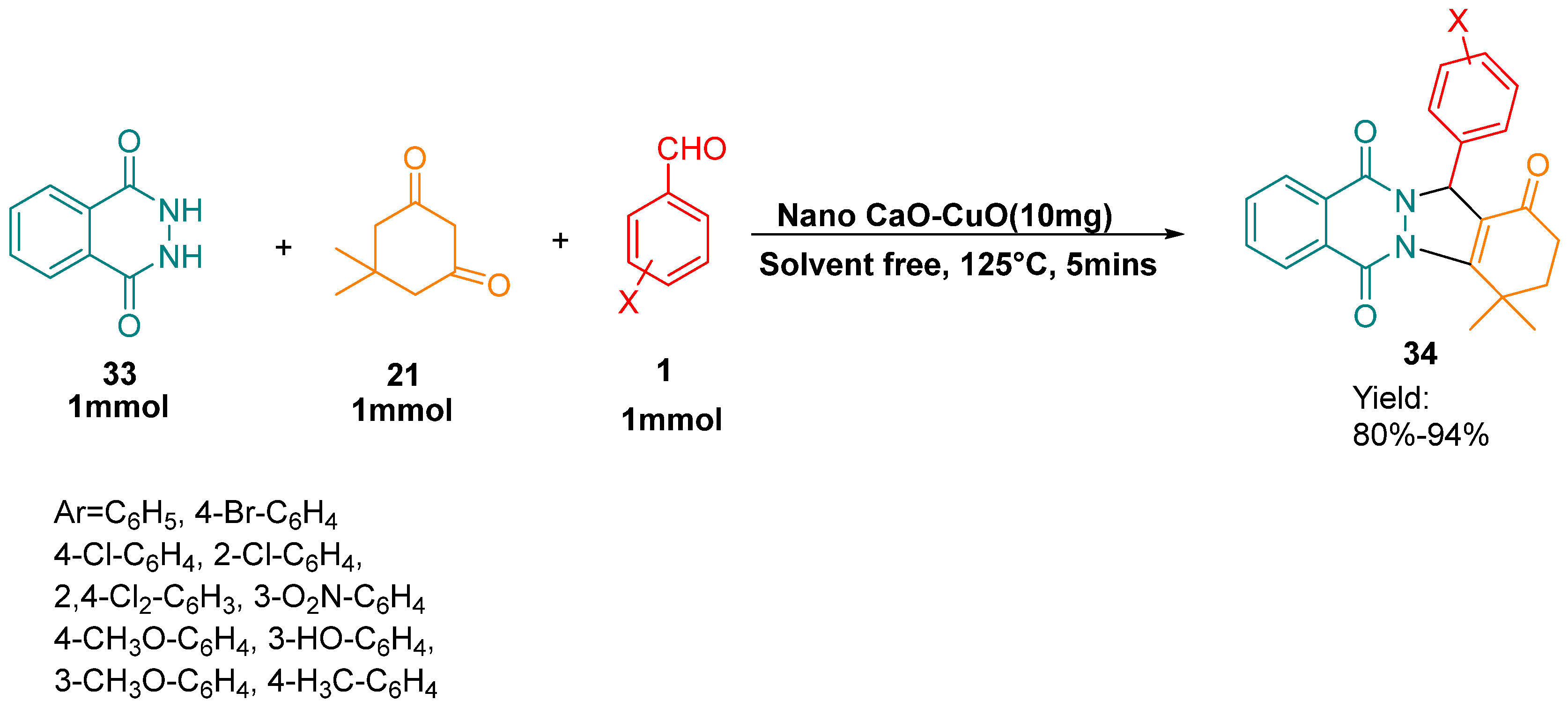3. Applications of CaO Nanoparticles in Multicomponent Synthesis of Heterocycles