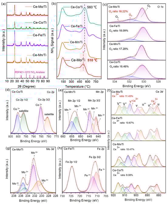 - Zeng, P.; Zhou, Z.; Liu, L.; Xu, R.; Liu, X.; Xu, M. Low temperature SCR Denitration with NH3 via synergistic effect of highly dispersed Fe-Co sites. Chem. Eng. J. 2025, 504, 159044. [Google Scholar] [CrossRef]