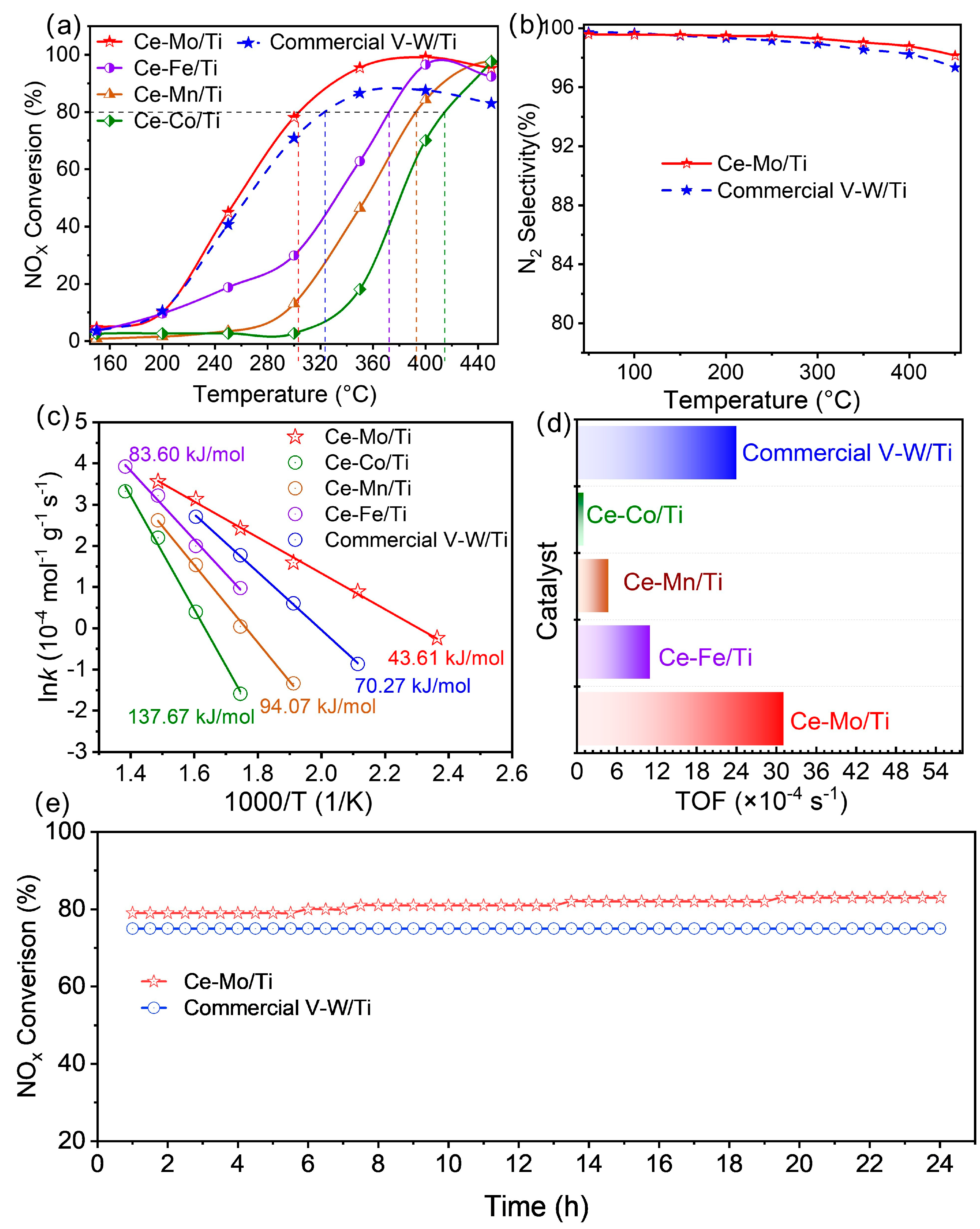 - Li, Y.; Li, G.; Zou, Y.; Liu, W.; Zhang, H.; Lu, S.; Li, Z.; Zhang, S.; Peng, H. Unveiling the remarkable deNOx performance of MnMoVOx catalysts via dual regulation of the redox and acid sites. Appl. Catal. B Environ. Energy 2024, 344, 123612. [Google Scholar] [CrossRef]