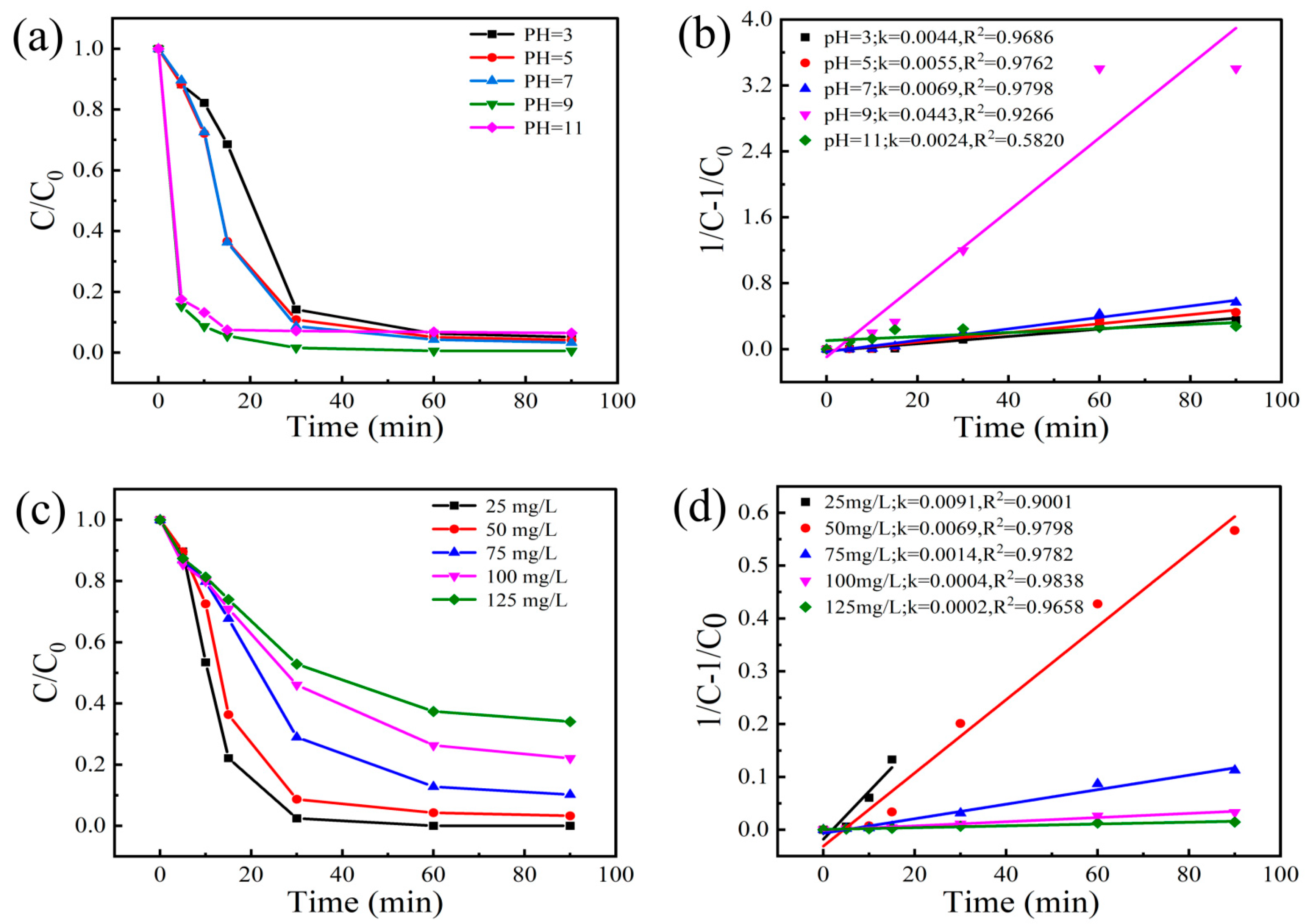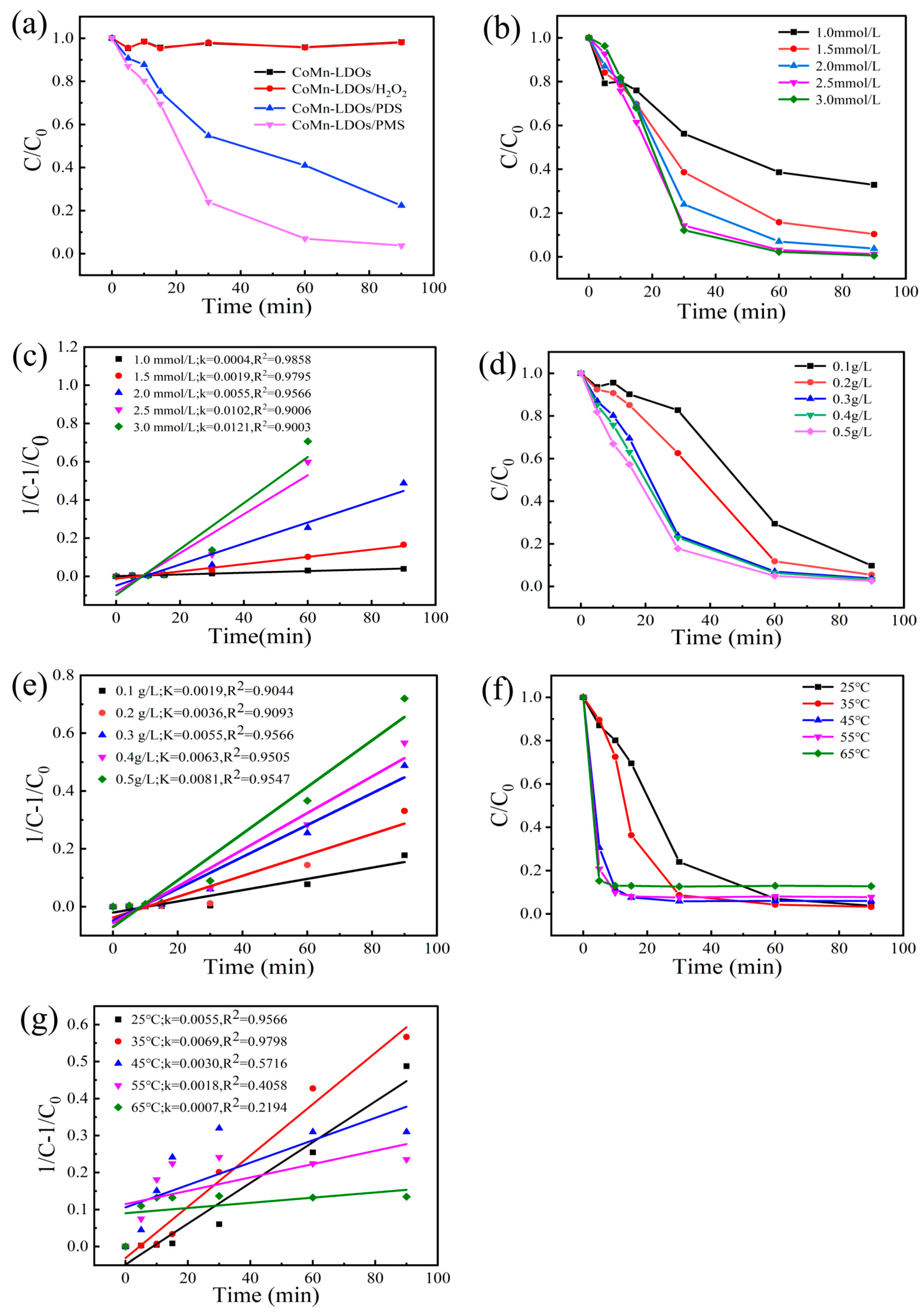 2.2.2. Operational Parameters Affecting PMS Activation by CoMn-LDO for BPA Degradation