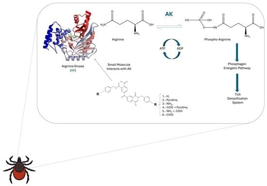 Rojas-Cabeza, J.F.; Moreno-Cordova, E.N.; Álvarez-Armenta, A.; Castro-Riquelme, C.L.; Muhlia-Almazan, A.; Lopez-Zavala, A.A.; Santacruz-Ortega, H.; Ochoa-Terán, A.; Sotelo-Mundo, R.R. A Novel Scaffold for Tick Management: Binding of Carbamoyl Carboxylic Acid Analogues to Arginine Kinase. Catalysts 2025, 15, 982. https://doi.org/10.3390/catal15100982