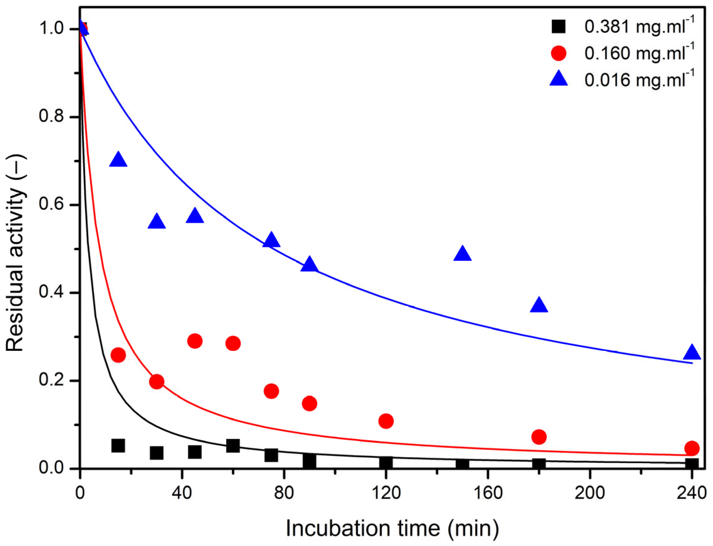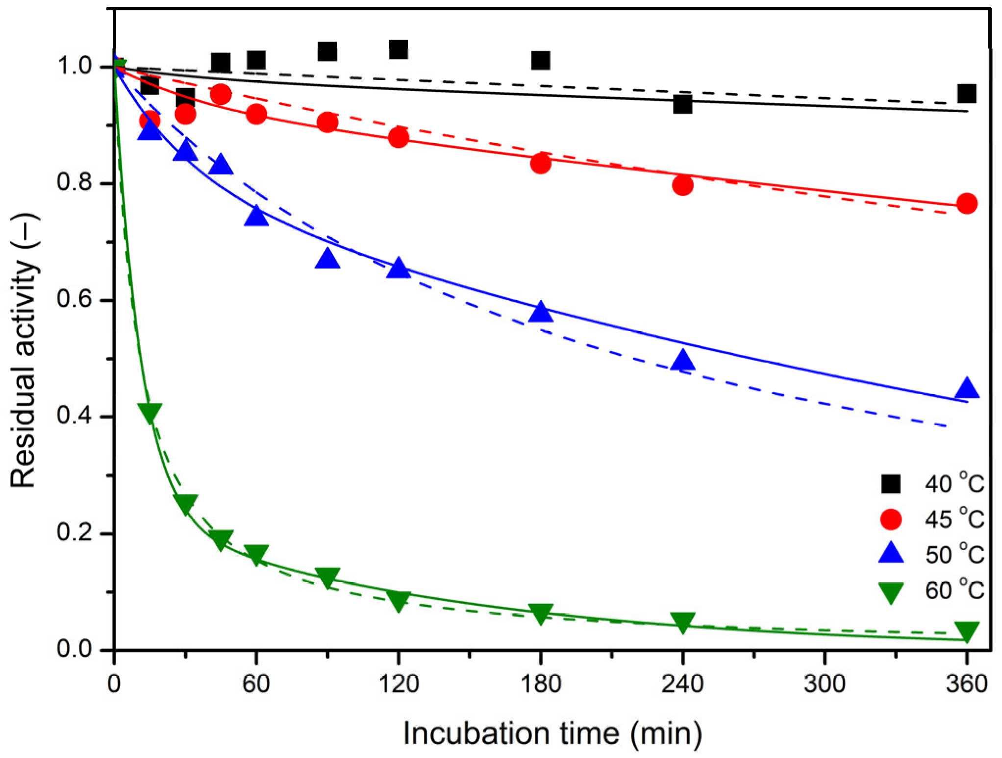 - Vrábel, P.; Polakovič, M.; Štefuca, V.; Báleš, V. Analysis of mechanism and kinetics of thermal inactivation of enzymes: Evaluation of multitemperature data applied to inactivation of yeast invertase. Enzym. Microb. Technol. 1997, 20, 348–354. [Google Scholar] [CrossRef]