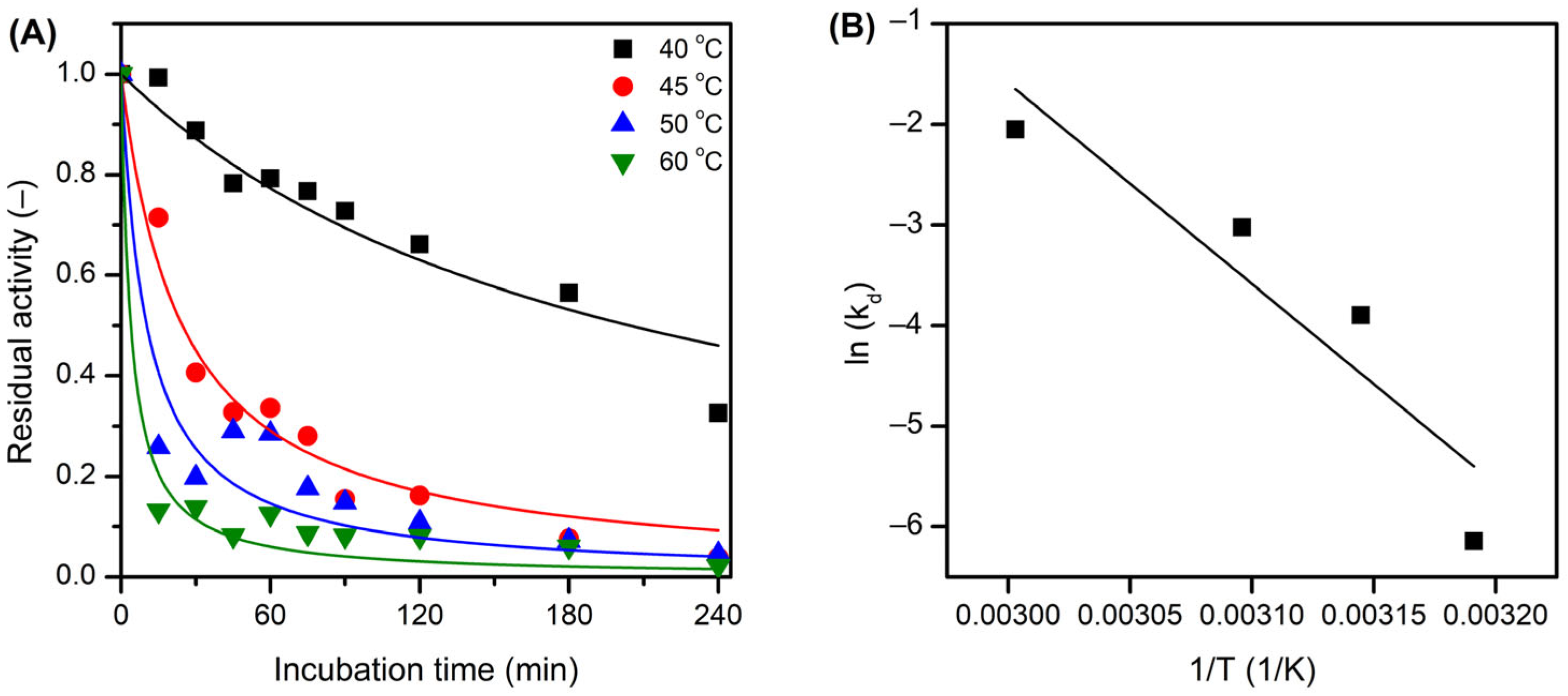 2.4. Thermal Inactivation of Free and Immobilized LEH
