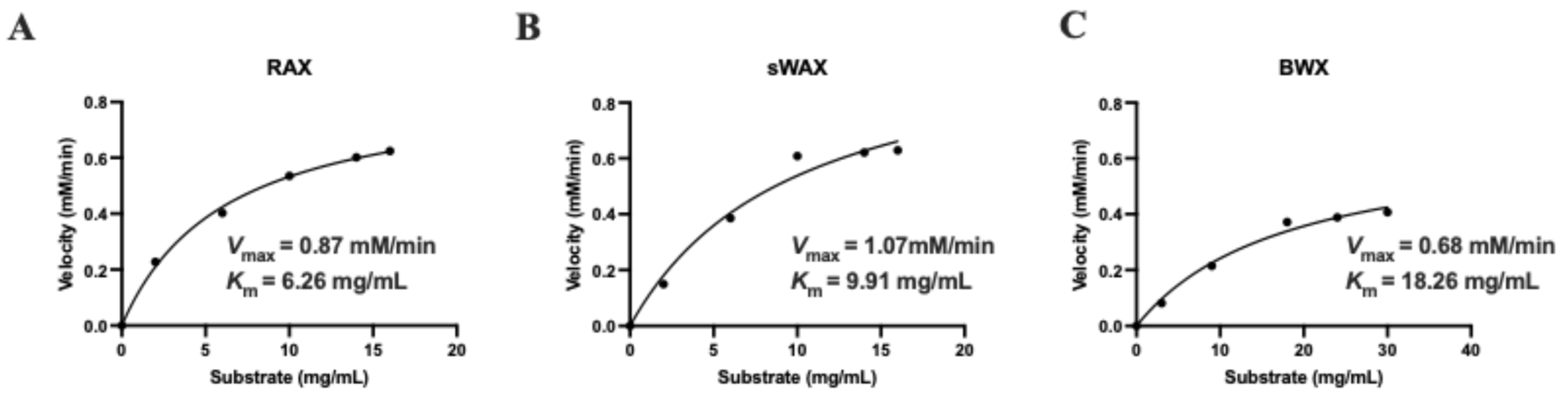 4.4. Determination of Enzymatic Activities and Substrate Specificities