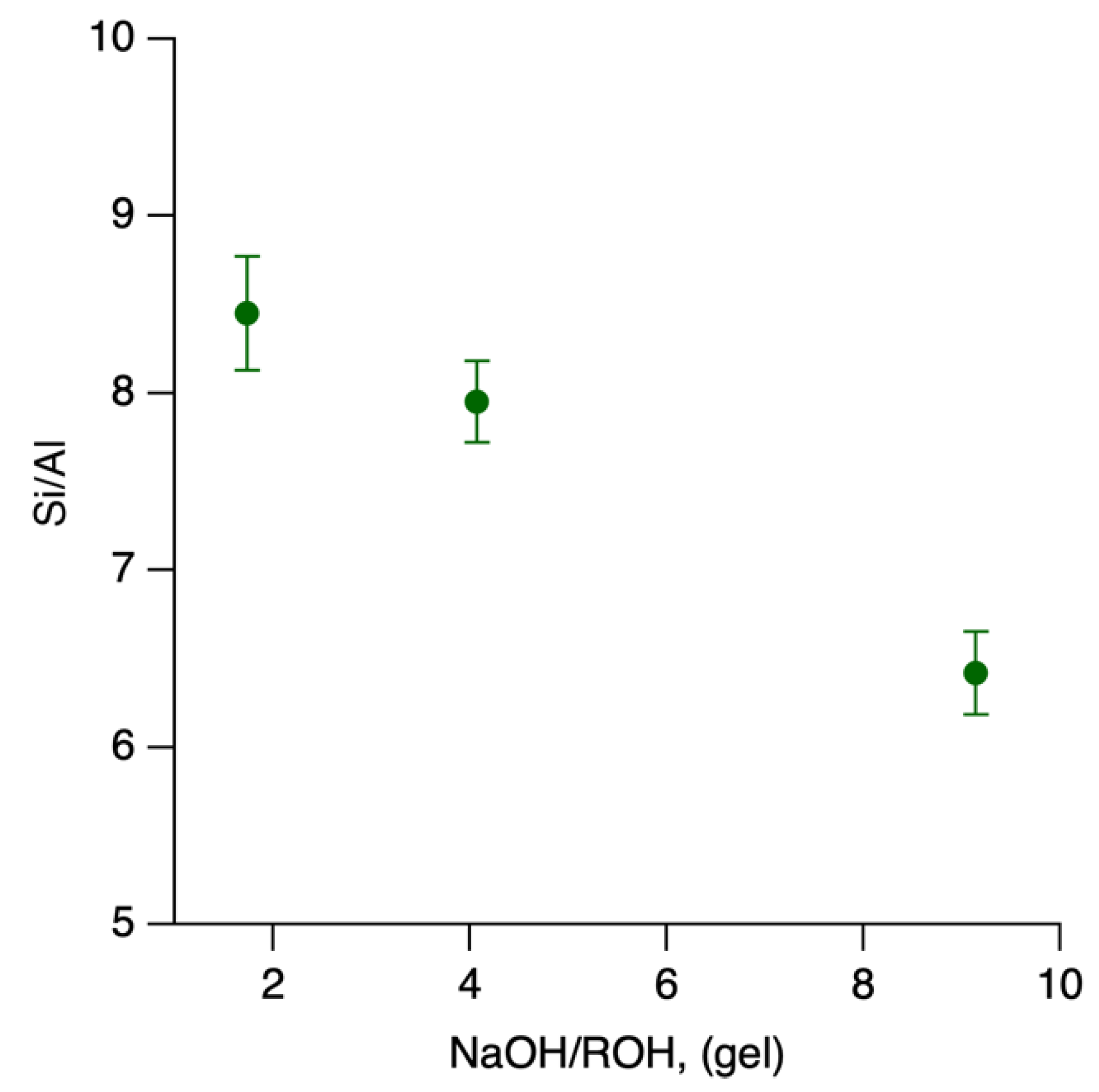 2.2. Effect of NaOH/ROH on Crystallization Kinetics and Framework Composition of SSZ-39