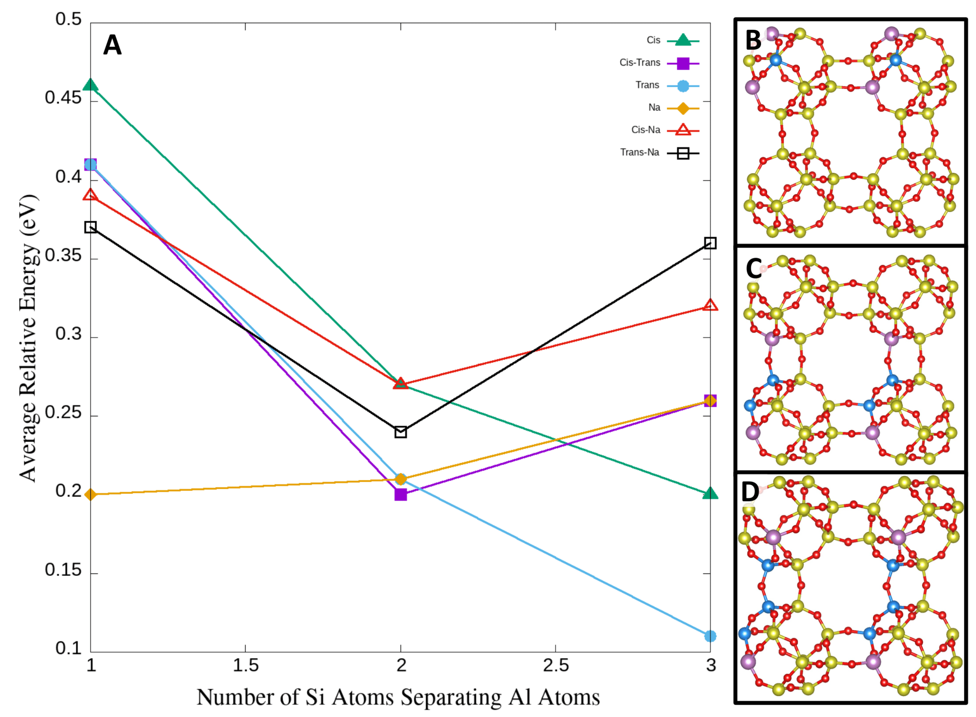 - Wang, X.; Wang, Y.; Moini, A.; Gounder, R.; Maginn, E.J.; Schneider, W.F. Influence of an N, N, N-Trimethyl-1-Adamantyl Ammonium (TMAda+) Structure Directing Agent on Al Distributions and Pair Features in Chabazite Zeolite. Chem. Mater. 2022, 34, 10811–10822. [Google Scholar] [CrossRef]