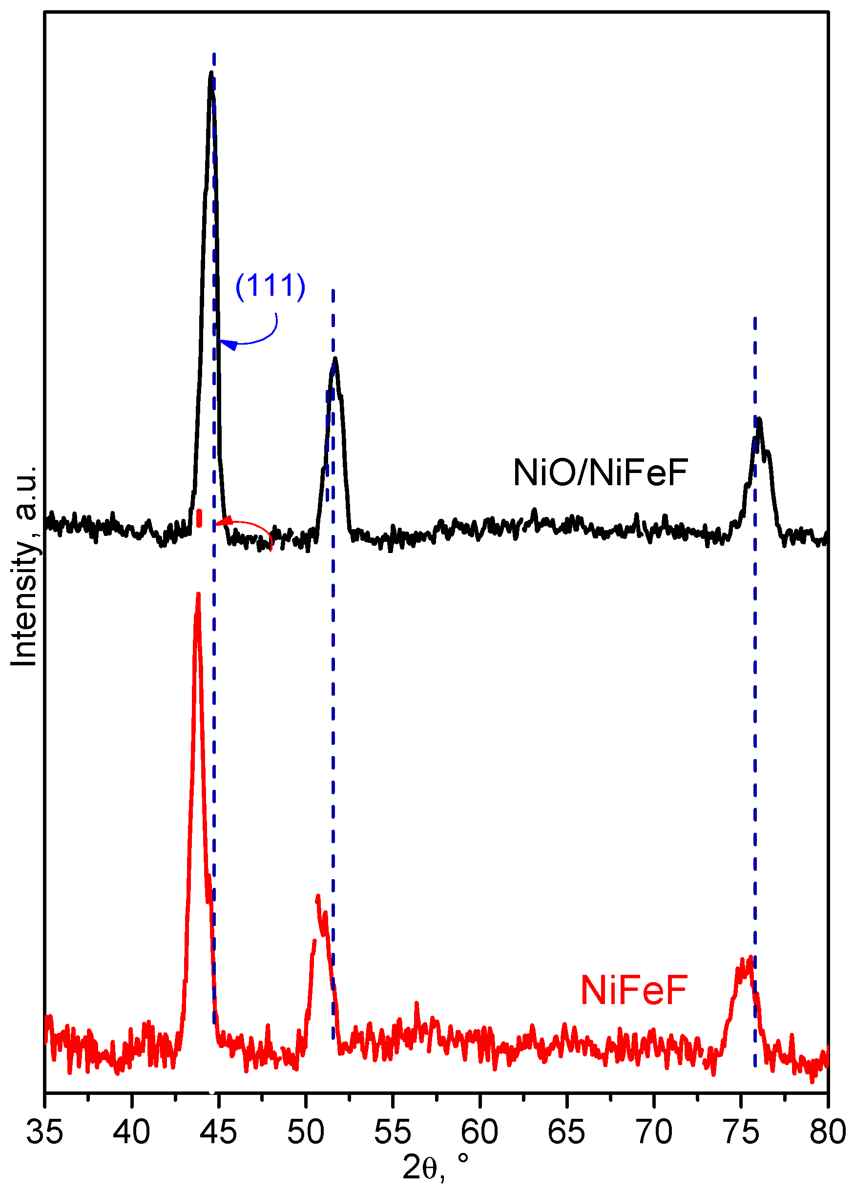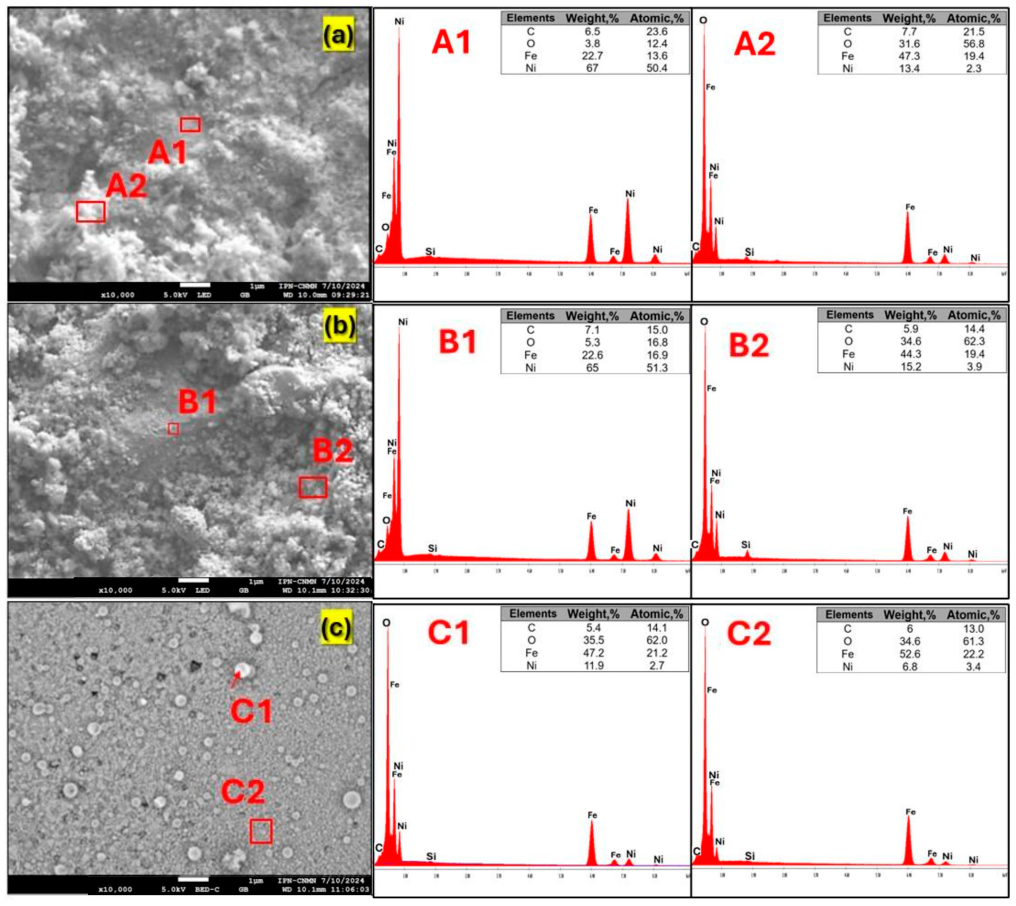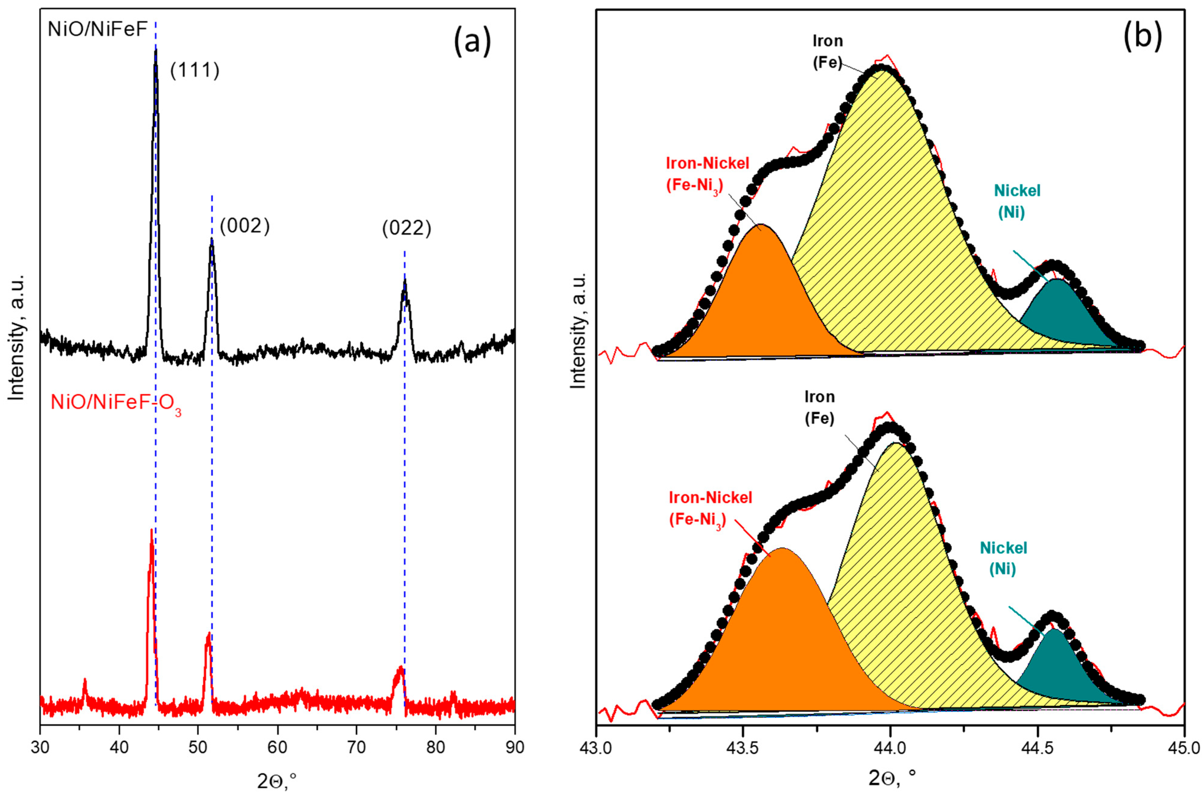 2.2. Crystalline Structure of NiFeF and NiO/NiFeF