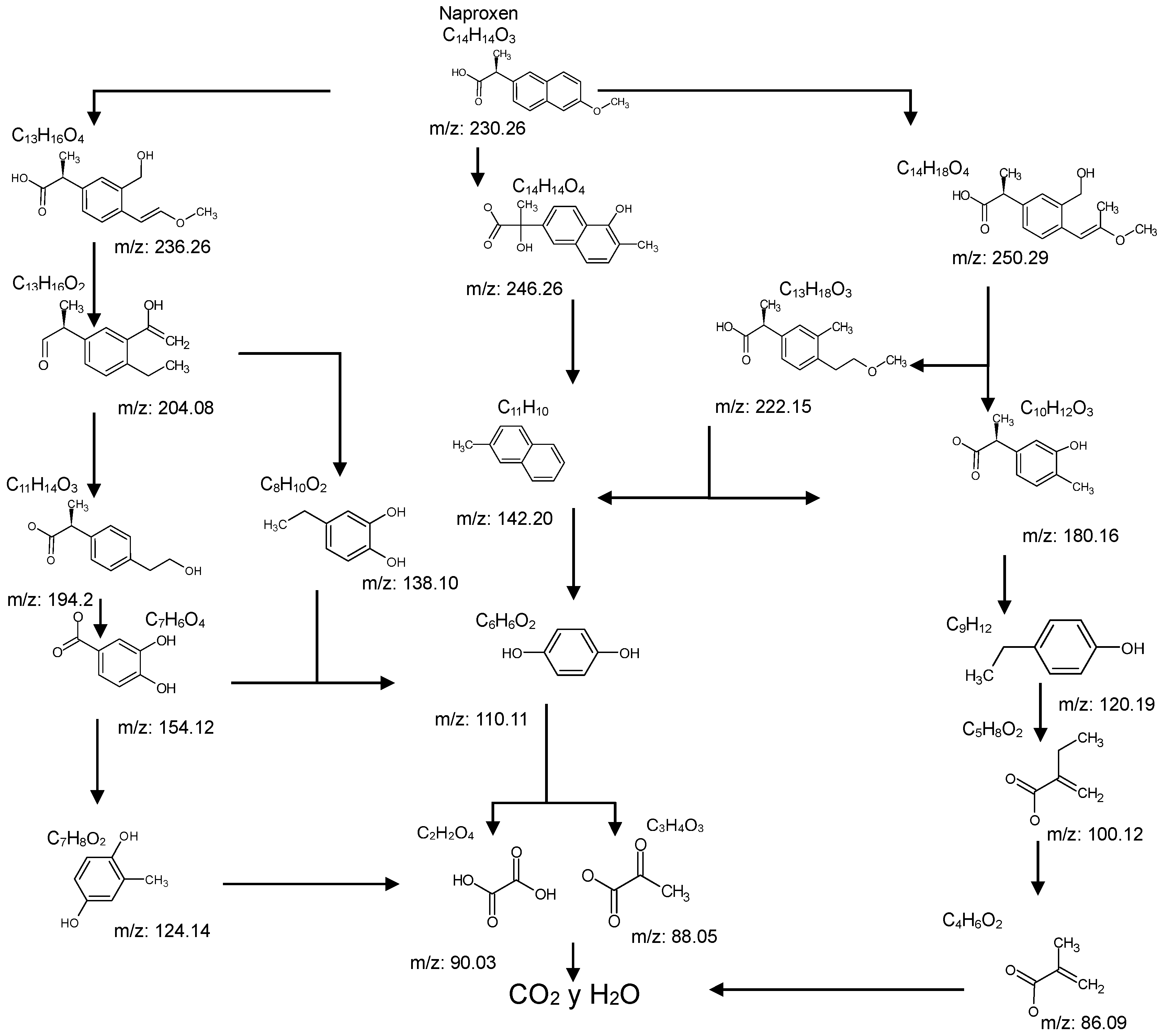 | 1. | C14H14O3 | Naproxen | ![]() | 230.26 | X | X | X |