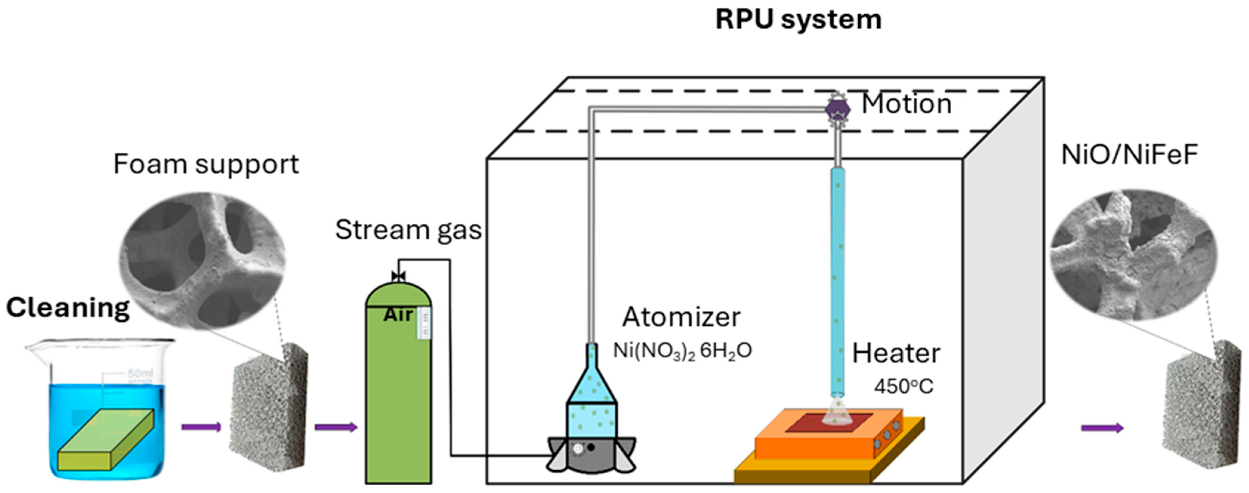 - Feng, C.; Diao, P. Nickel foam supported NiFe2O4-NiO hybrid: A novel 3D porous catalyst for efficient heterogeneous catalytic ozonation of azo dye and nitrobenzene. Appl. Surf. Sci. 2021, 541, 148683. [Google Scholar] [CrossRef]