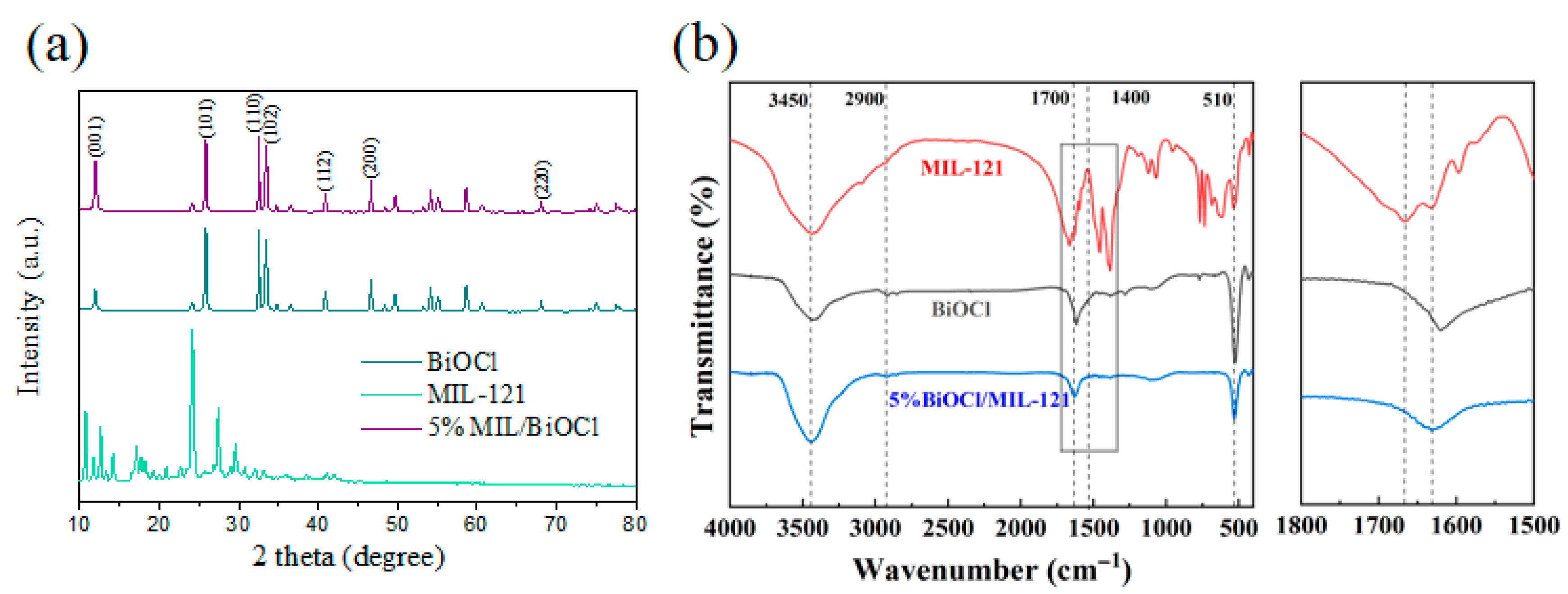 Chicago/Turabian StyleXu, Tao, Jinmin Chen, Yang Ma, Yuwei Pan, Hui Huang, and Guangyu Wu. 2025. "Construction of BiOCl/MIL-121 Composites for Efficient Photodegradation of Organic Pollutants Under Visible Light Irradiation" Catalysts 15, no. 10: 995. https://doi.org/10.3390/catal15100995