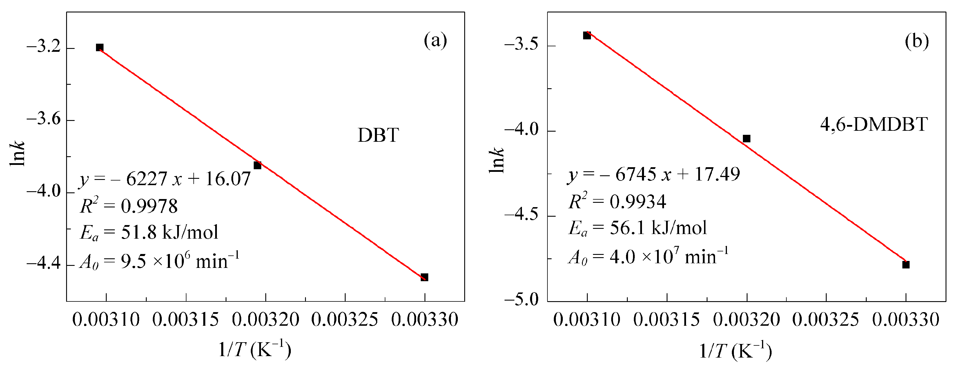 | Sample | T (K) | Cyclic Number | XDBT a (%) | X4,6-DMDBT a (%) | Ref. |