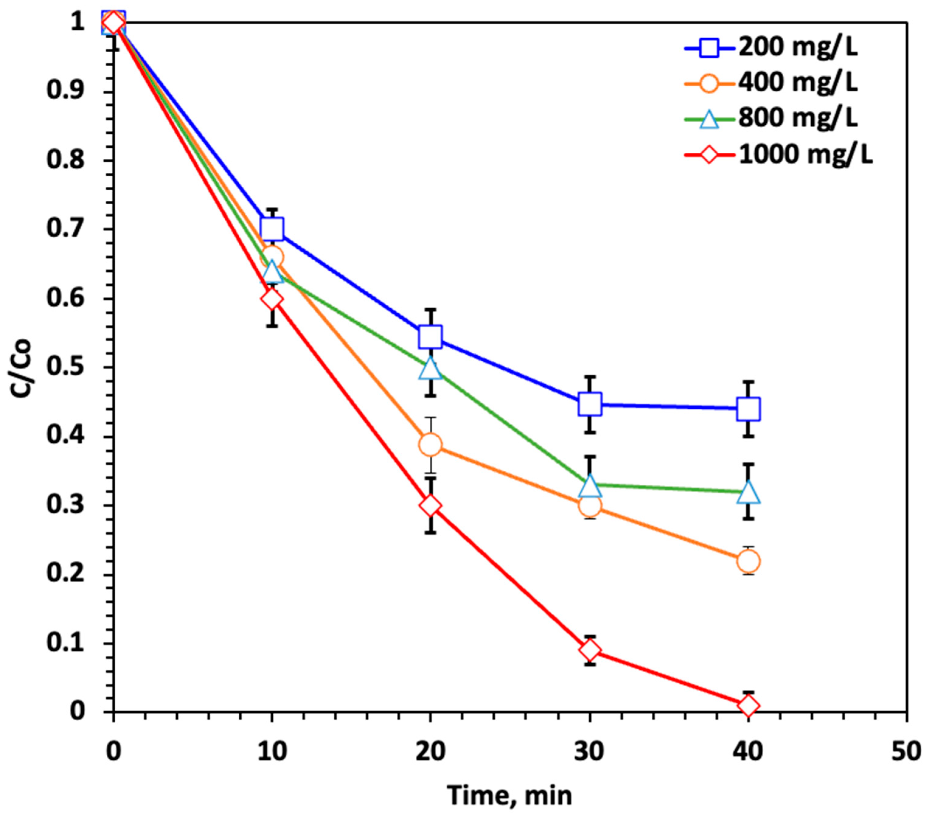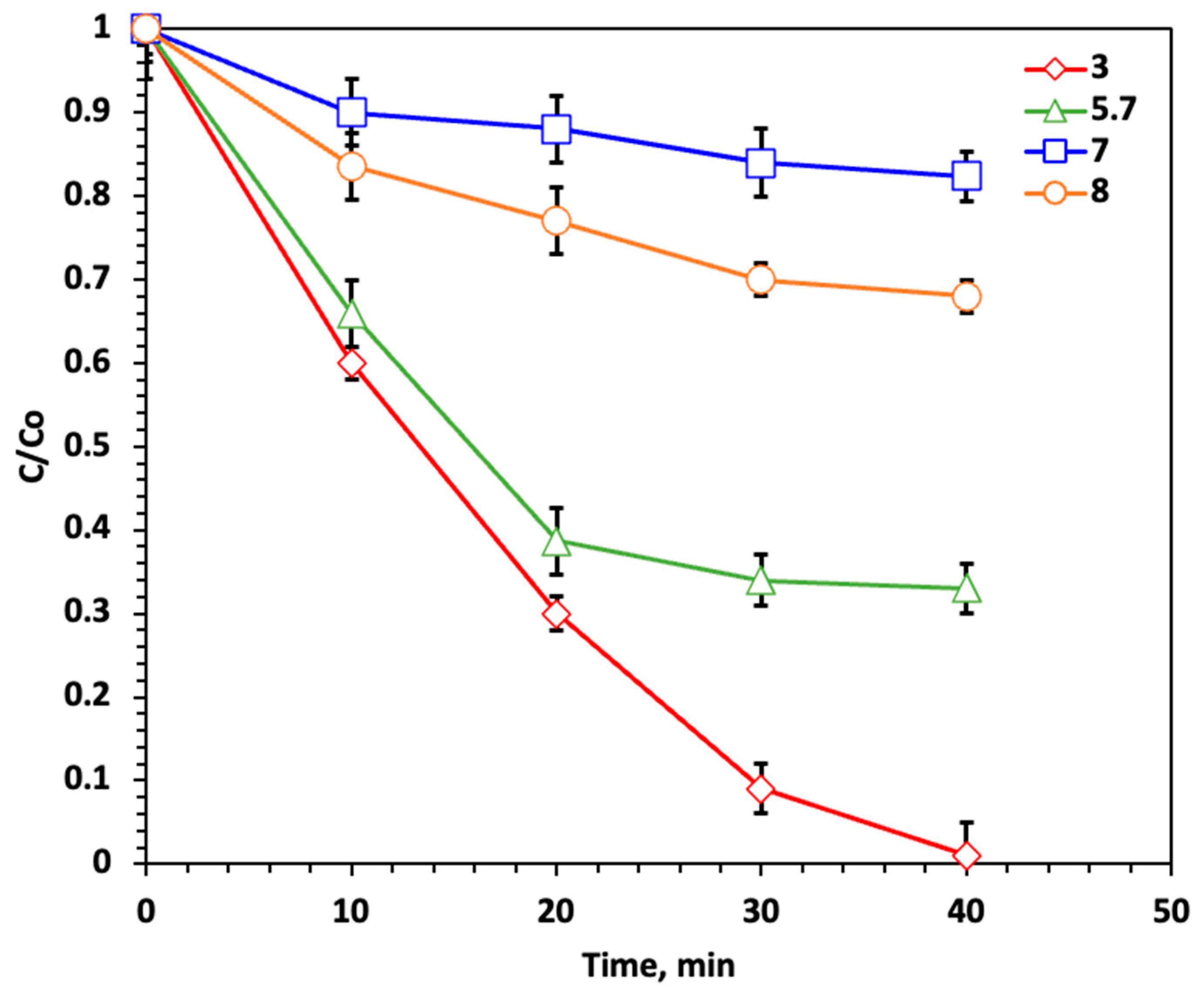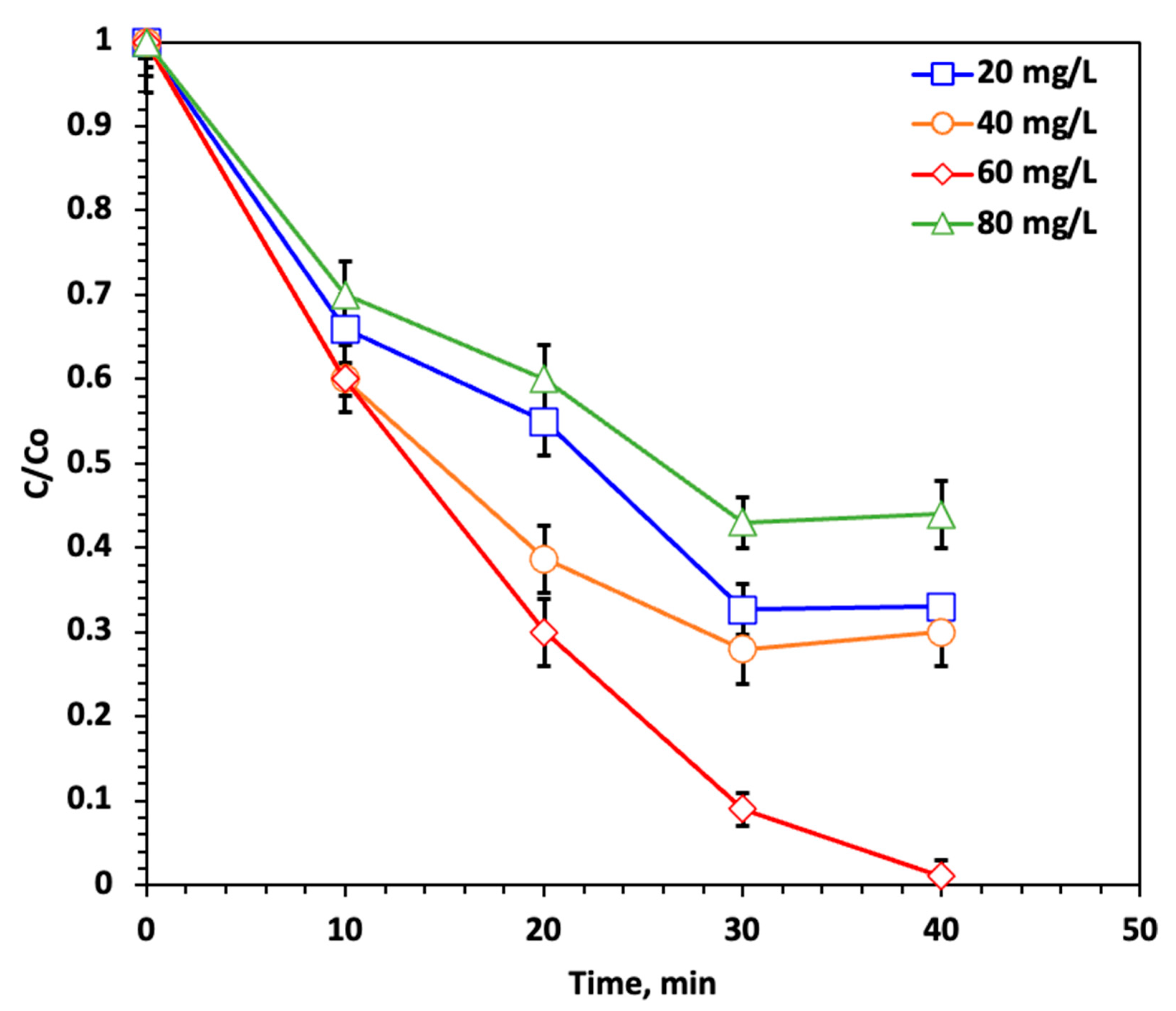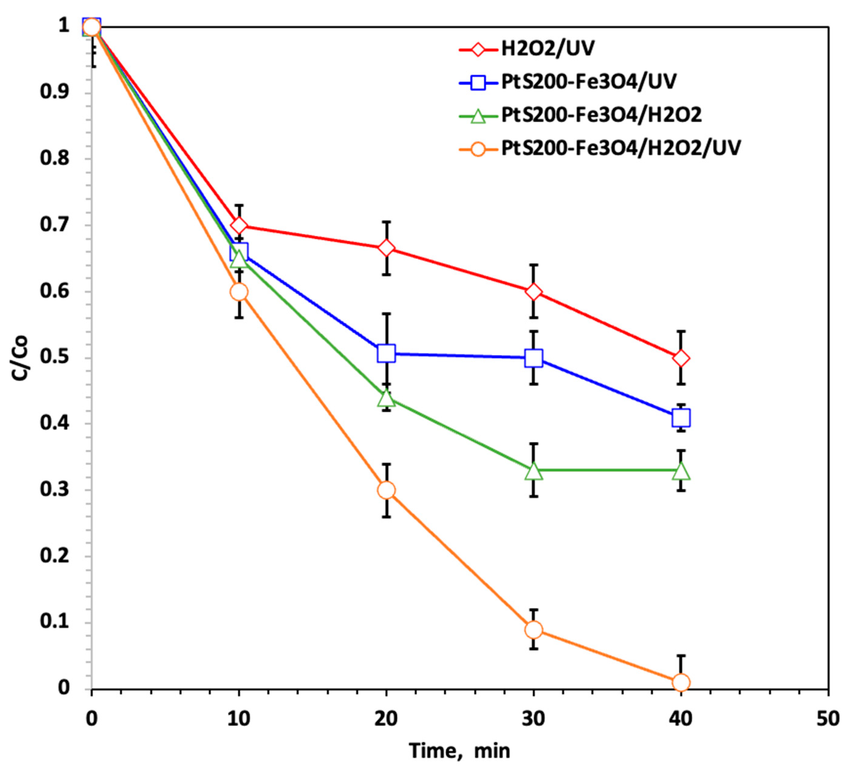2.2.3. Effect of Catalyst (PtS200–Fe3O4) Concentration