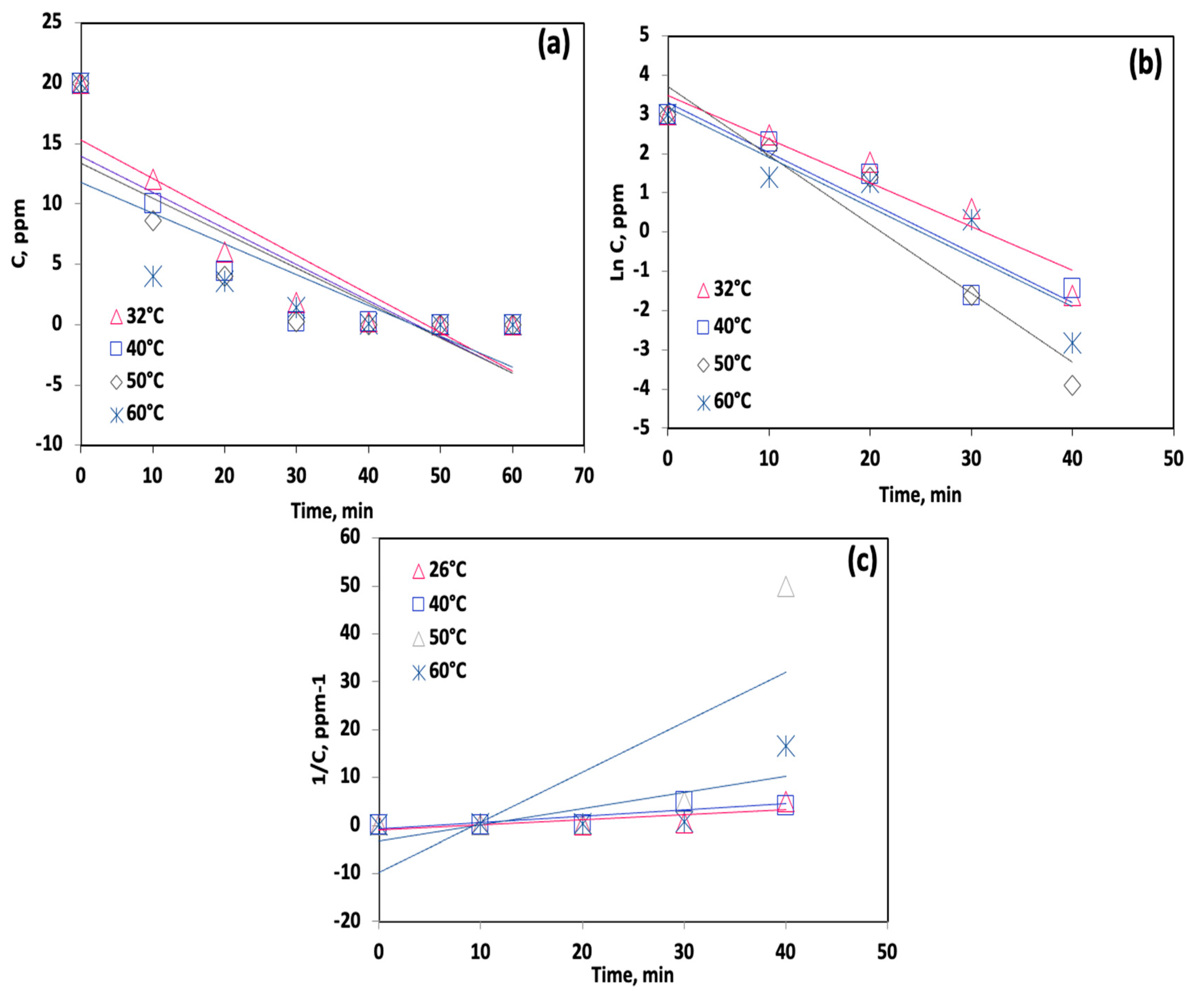 Zero-order | 32 | 0.32 | mg·L−1·min−1 | 0.81 | 31.25 |