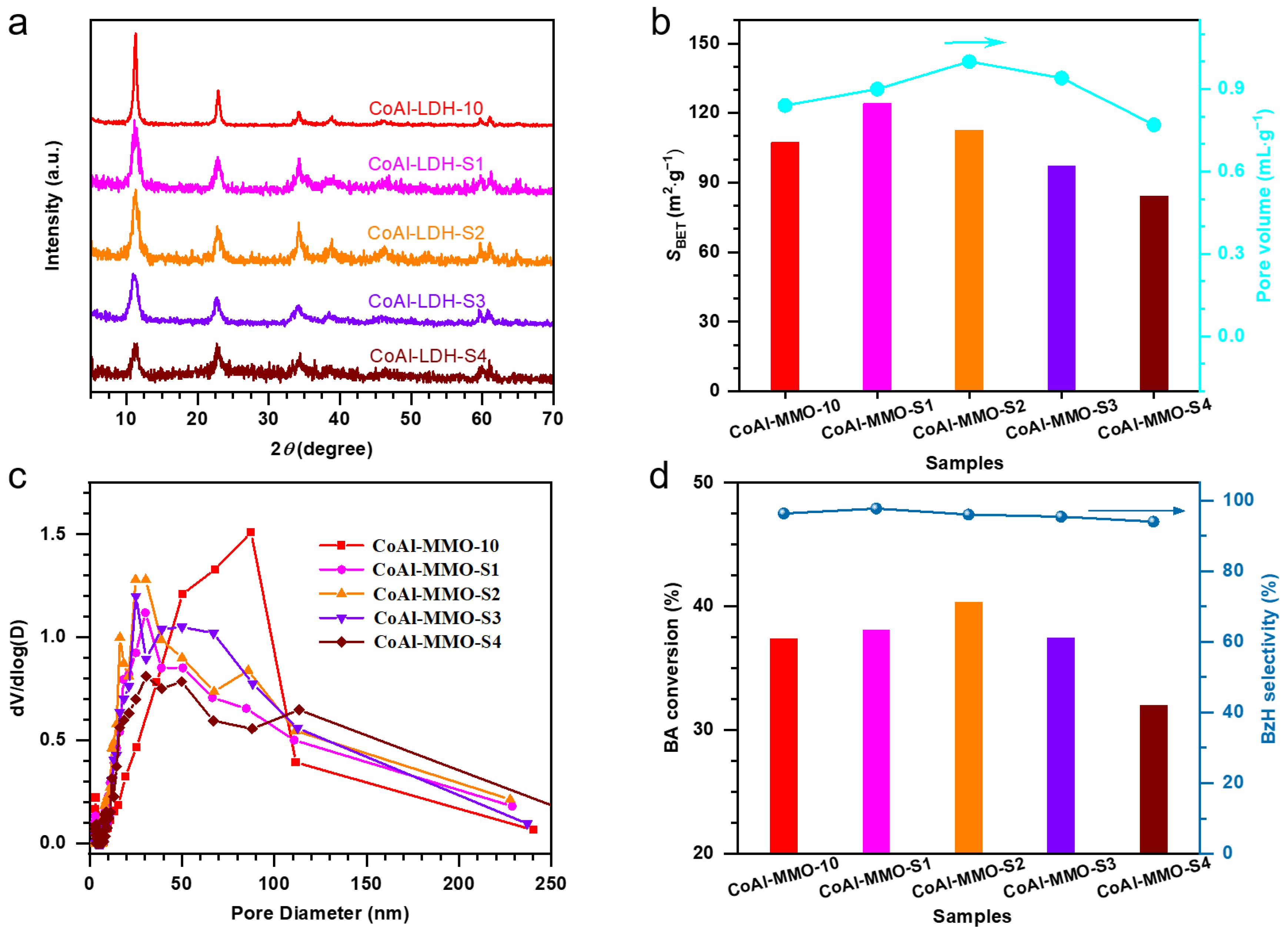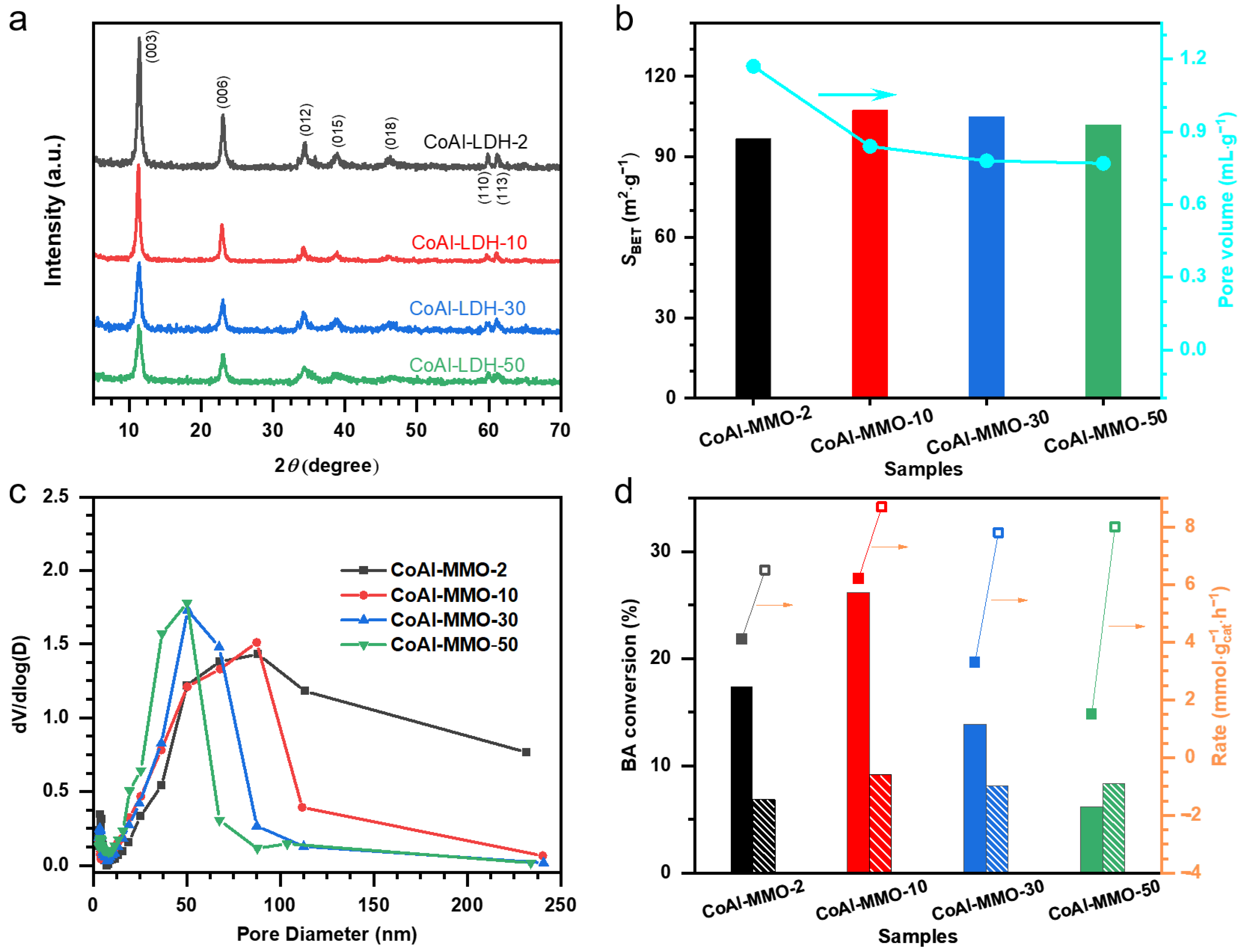 Zhang Q, Tan X, Hu Y, Cui H, Lin X, Li F, Lei H, Zhuo O. Pore Structure Modification of the Mixed Metal Oxides Derived from Co-Al Layered Double Hydroxides and Catalytic Performance Enhancement for Aerobic Oxidation of Benzyl Alcohol. Catalysts. 2025; 15(11):1002. https://doi.org/10.3390/catal15111002
