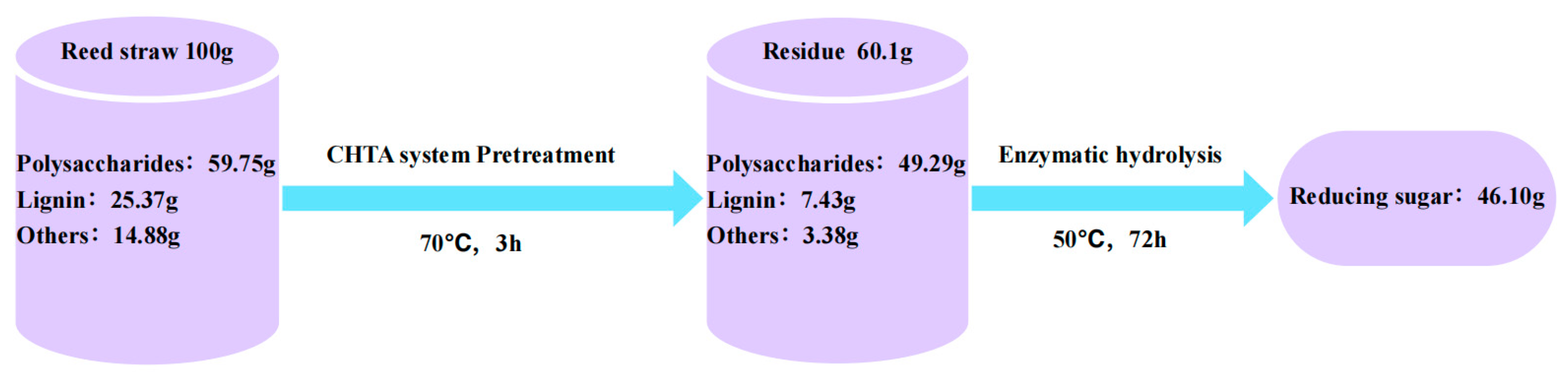 - Zhang, Z.H.; Xu, J.; Xie, J.X.; Zhu, S.Y.; Wang, B.; Li, J.; Chen, K.F. Physicochemical Transformation and Enzymatic Hydrolysis Promotion of Reed Straw after Pretreatment with a New Deep Eutectic Solvent. Carbohydr. Polym. 2022, 290, 119472. [Google Scholar] [CrossRef]