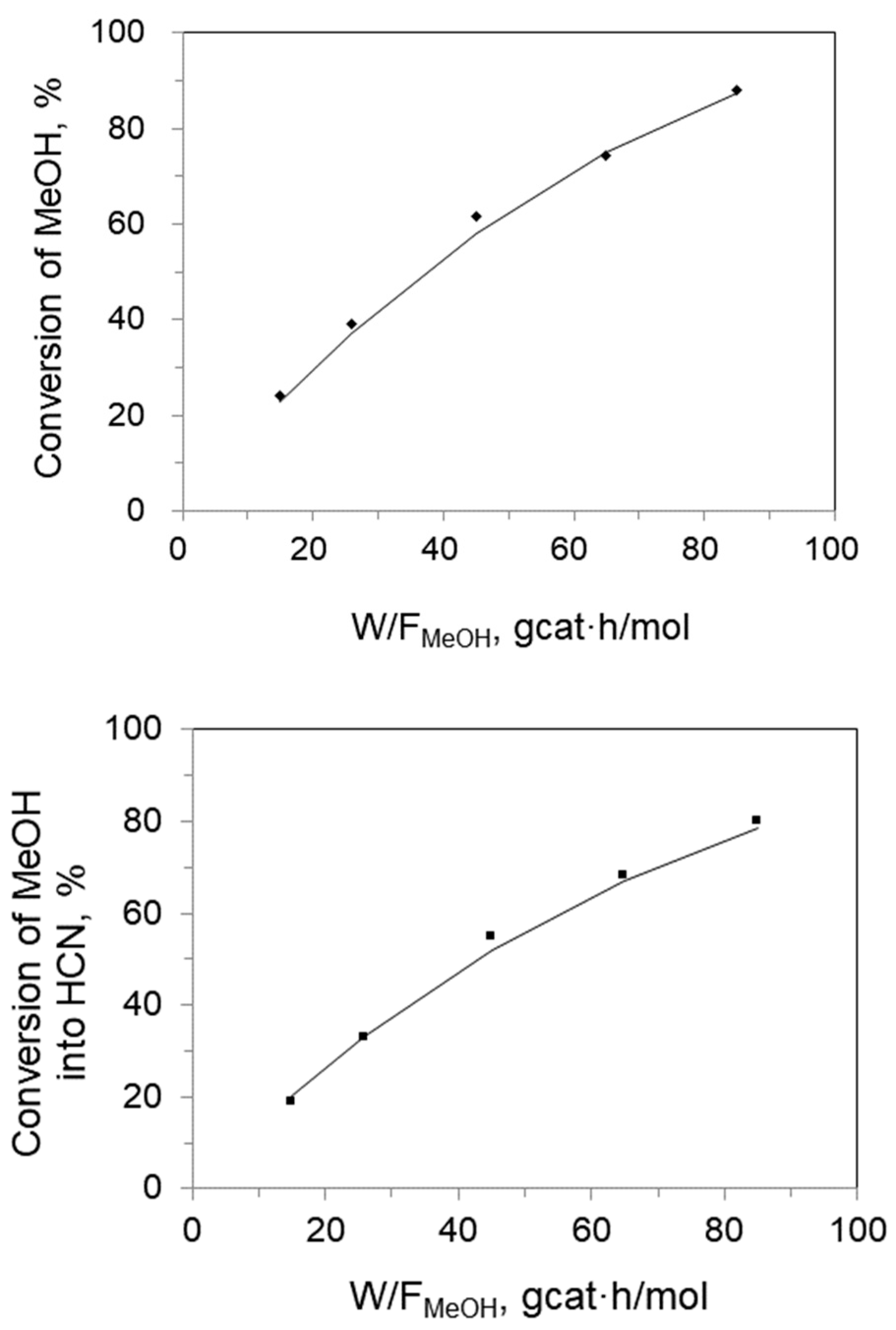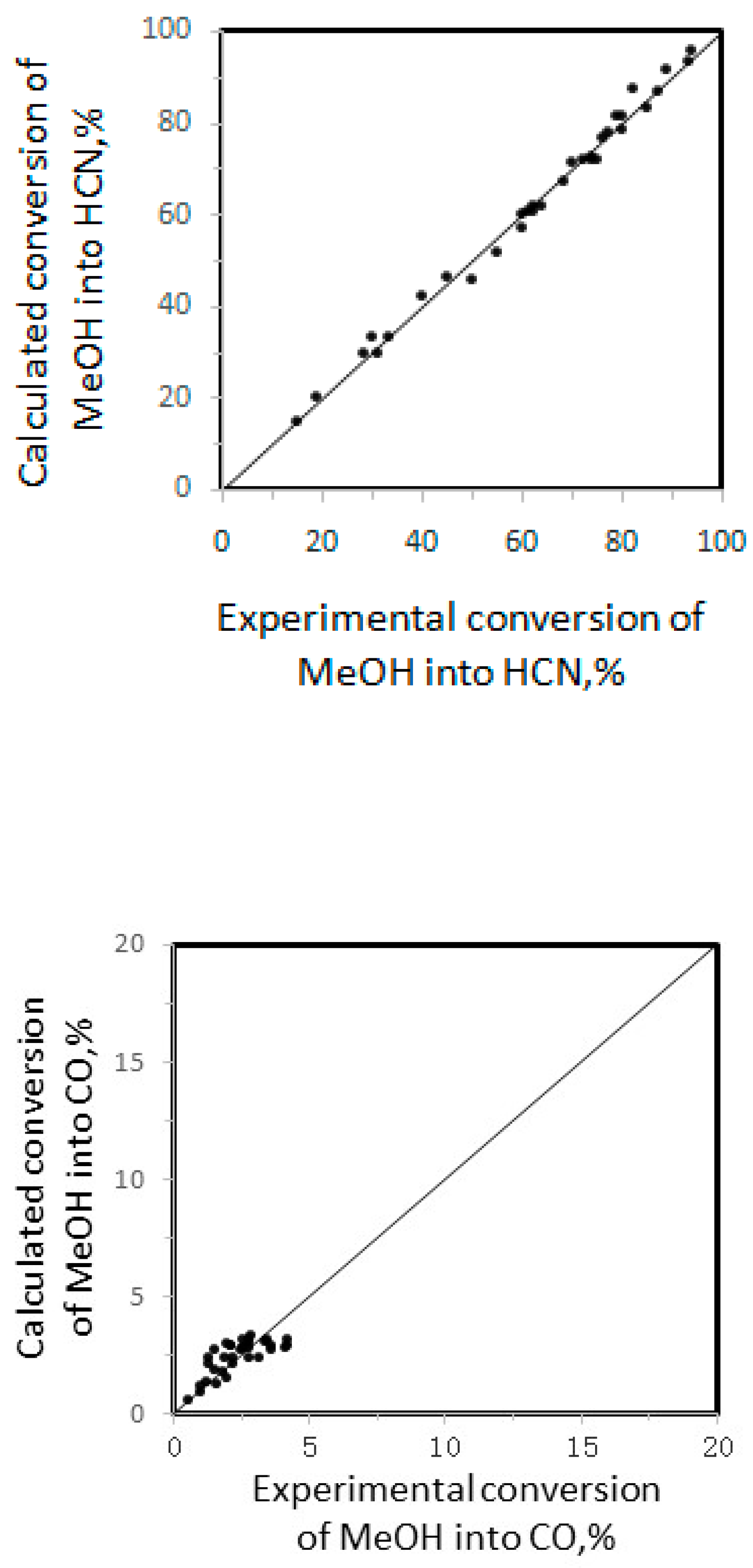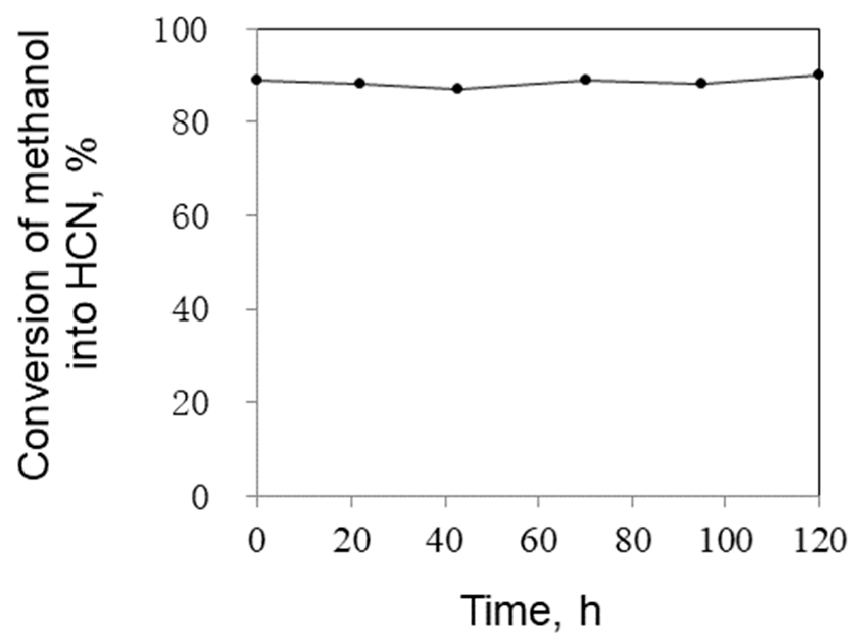 - Koryablina, N.; Khramov, M.; Monical, V. Process of Catalytic Ammoxidation for Hydrogen Cyanide Production. U.S. Patent 776,322,5B2, 27 July 2010. [Google Scholar]